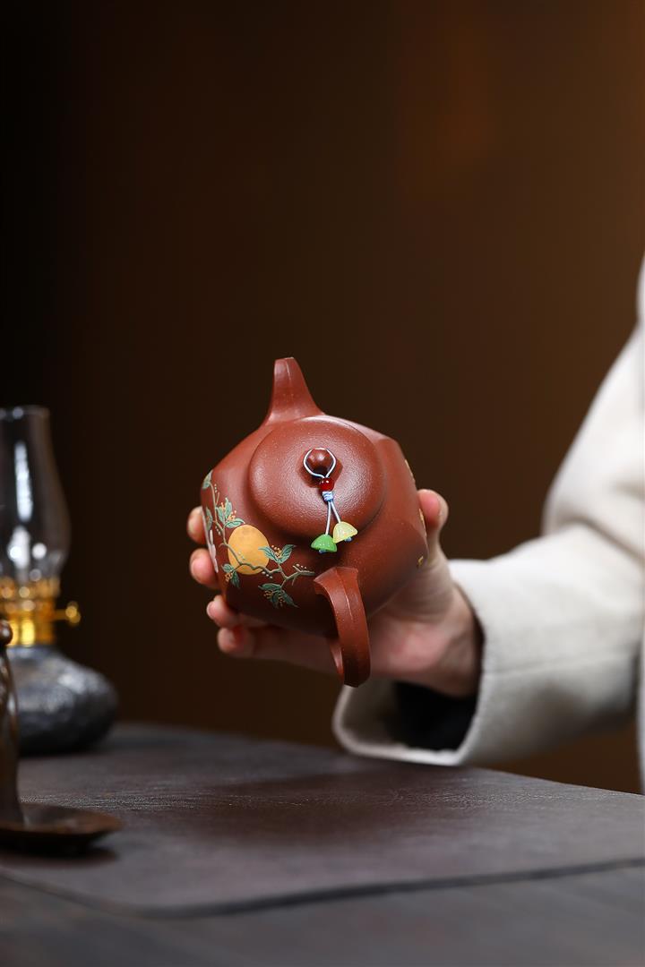 280cc原礦紅降坡六方攬月茶壺POT9297