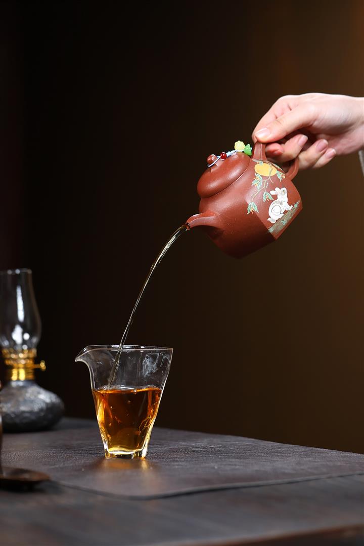 【泥料特點】砂土氣重,似淳實農民,日久使用,漸露鋒芒,養成變化,溫潤莊重。紫砂是壹種雙重氣孔結構的多孔性材質,氣孔微細,密度高。用紫砂壺沏茶,不失原味,且香不渙散,得茶之真香真味。紫砂使用越久,壺身色澤越發光亮照人,氣韻溫雅。紫砂壺長久使用器身會因撫摸擦拭,變得越發溫潤光澤。