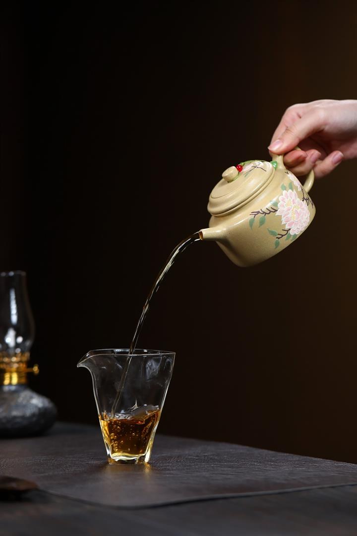 【泥料特點】砂土氣重,似淳實農民,日久使用,漸露鋒芒,養成變化,溫潤莊重。紫砂是壹種雙重氣孔結構的多孔性材質,氣孔微細,密度高。用紫砂壺沏茶,不失原味,且香不渙散,得茶之真香真味。紫砂使用越久,壺身色澤越發光亮照人,氣韻溫雅。紫砂壺長久使用器身會因撫摸擦拭,變得越發溫潤光澤。
