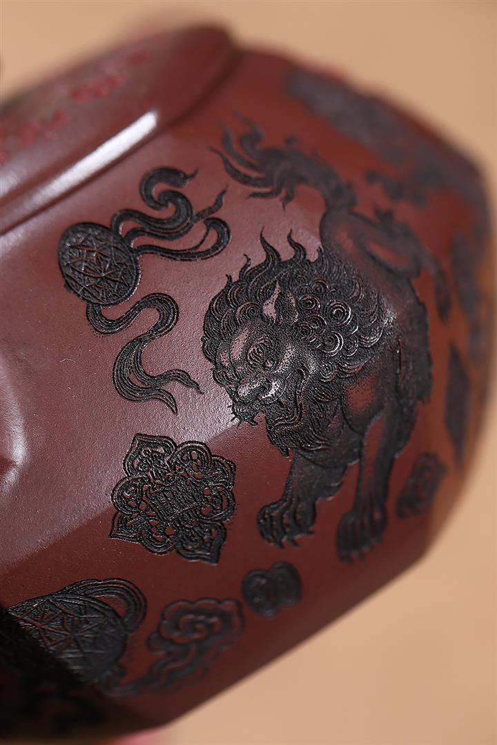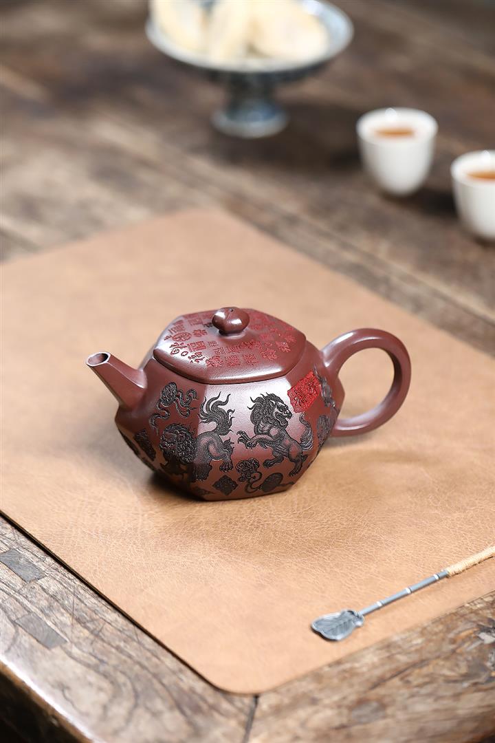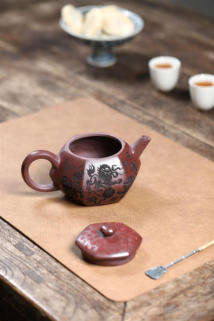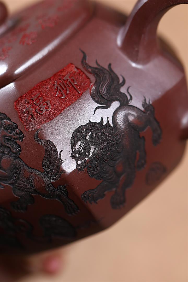 390cc原礦老紫泥六方福獅獻瑞茶壺POT9302