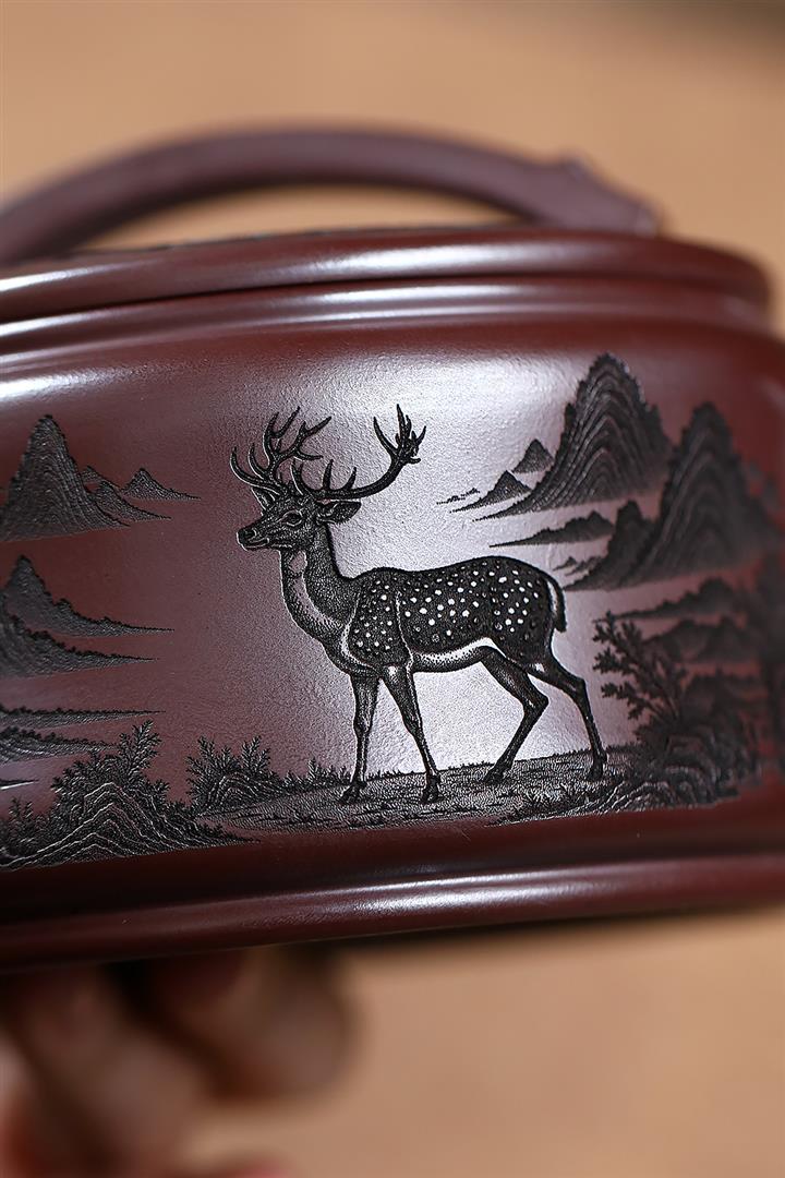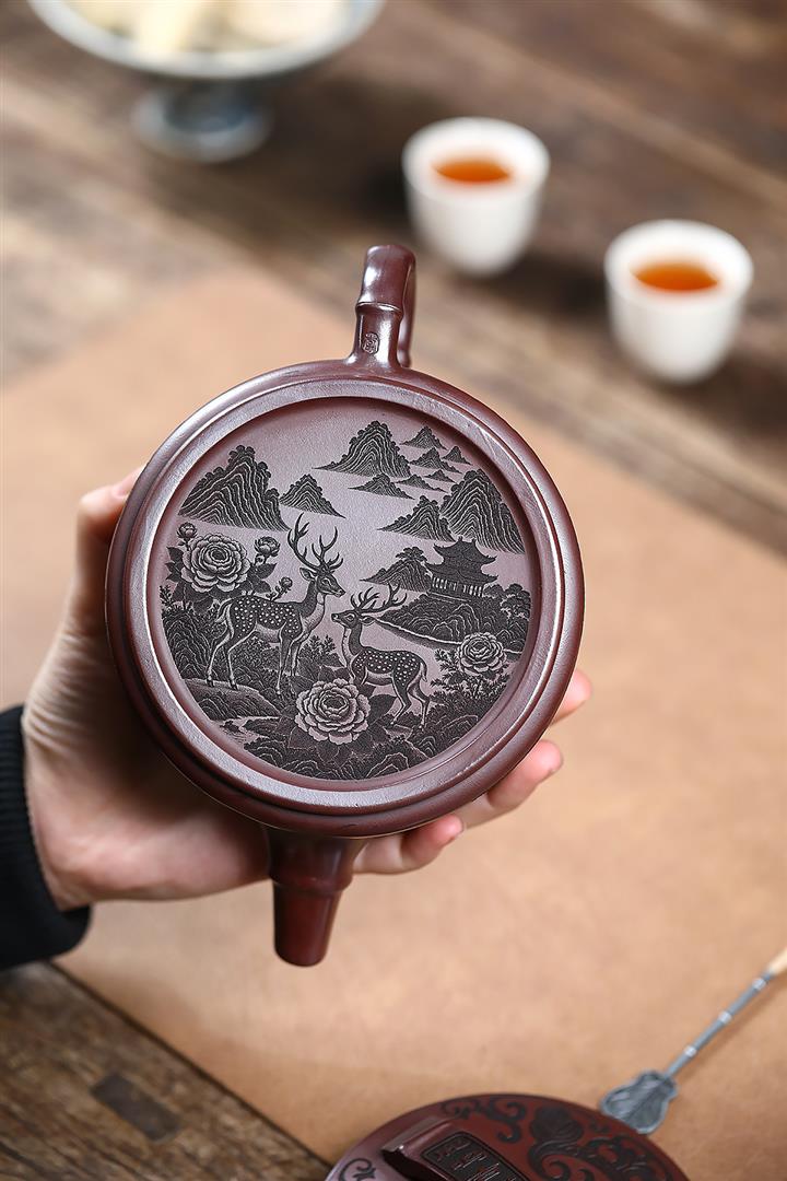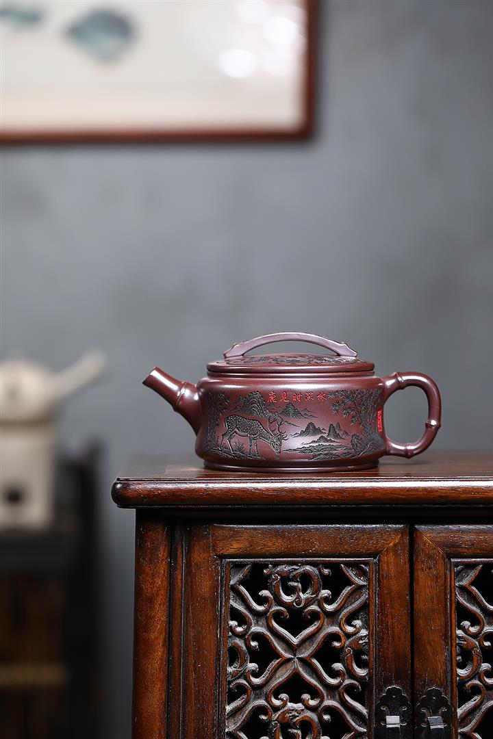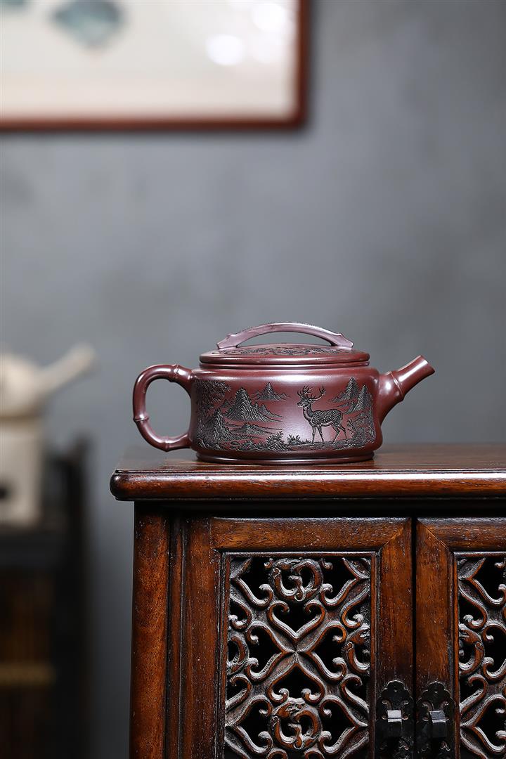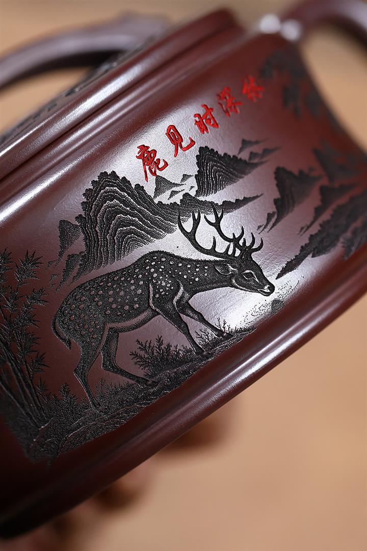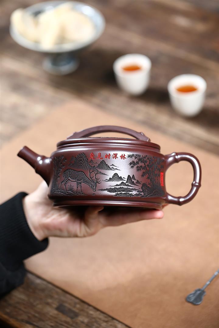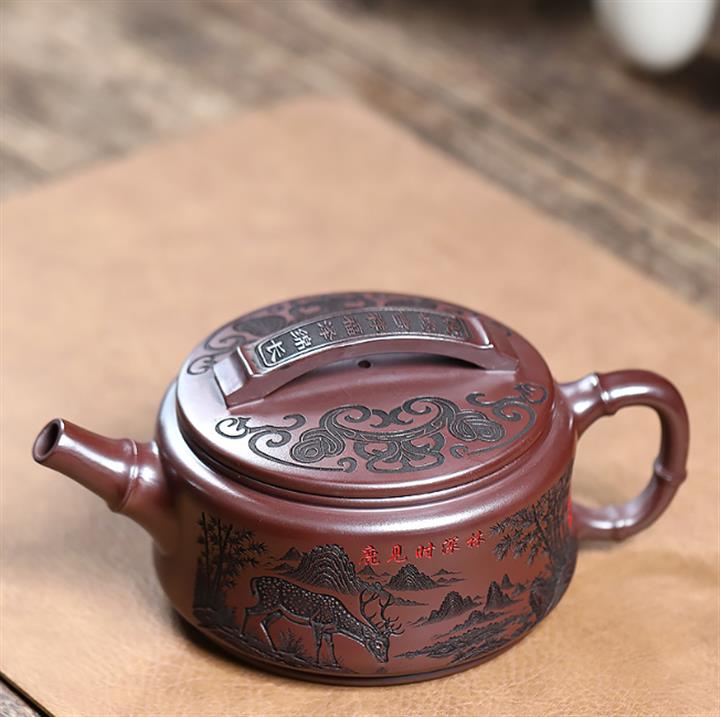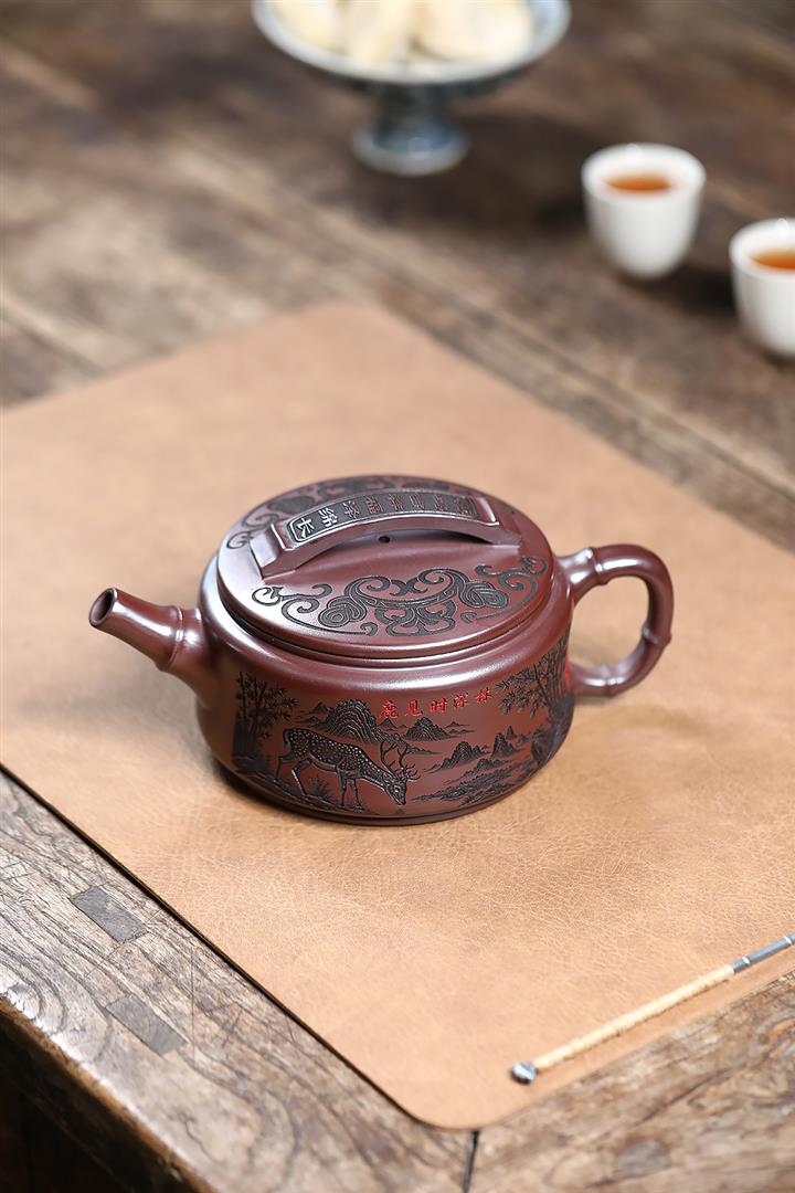 550cc原礦石紅福鹿竹節漢瓦泡茶壺POT9303
