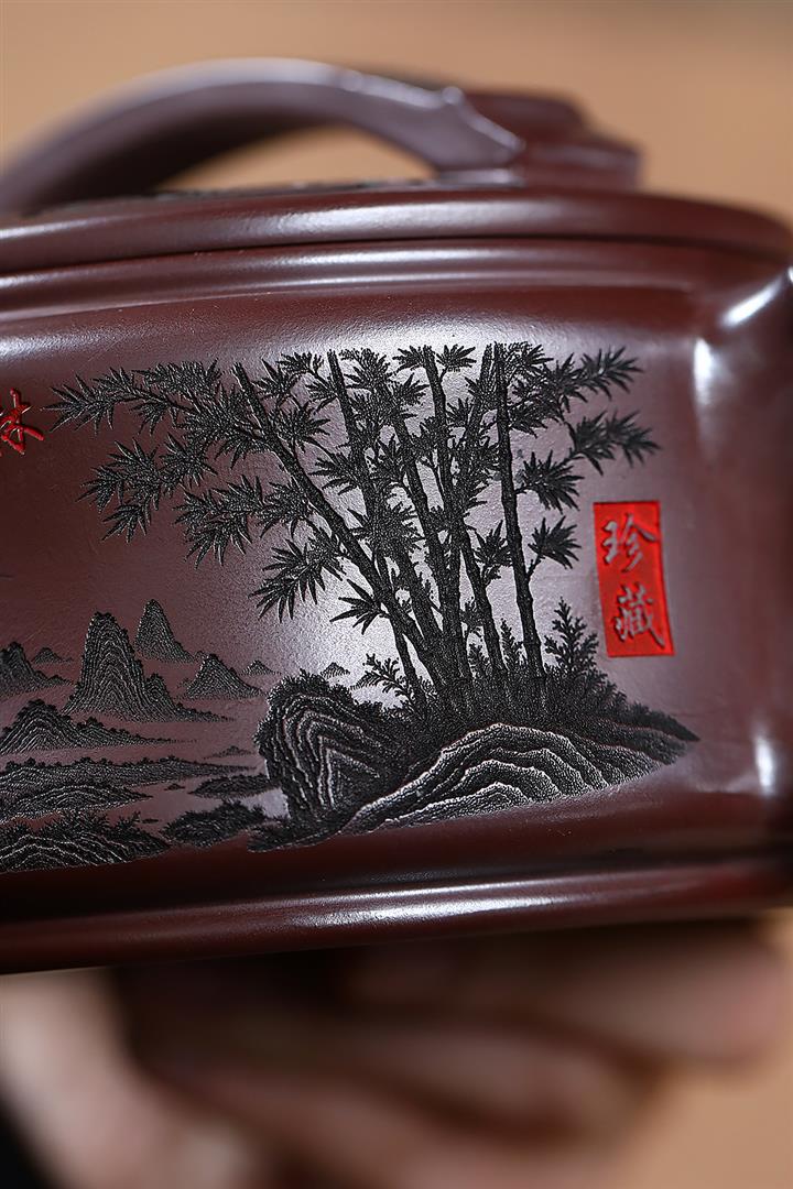 【泥料特點】砂土氣重,似淳實農民,日久使用,漸露鋒芒,養成變化,溫潤莊重。紫砂是壹種雙重氣孔結構的多孔性材質,氣孔微細,密度高。用紫砂壺沏茶,不失原味,且香不渙散,得茶之真香真味。紫砂使用越久,壺身色澤越發光亮照人,氣韻溫雅。紫砂壺長久使用器身會因撫摸擦拭,變得越發溫潤光澤。