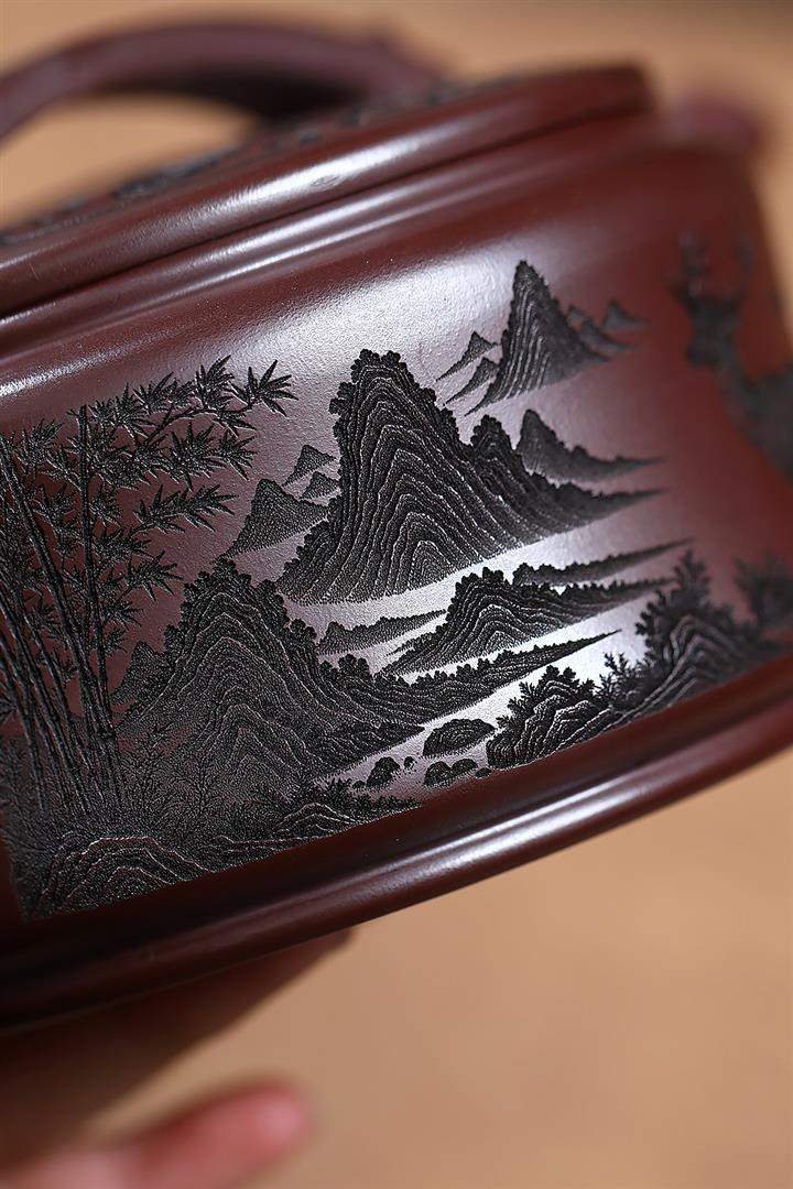 650cc原礦石紅熊貓圓竹泡茶壺POT9305