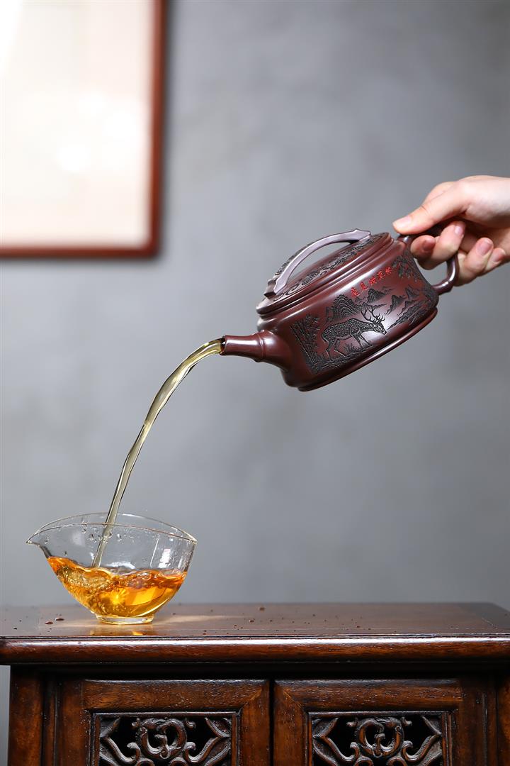 【作品介紹】此款壺形線條流暢,壺把,壺嘴,壺身壹氣呵成栩栩如生,是收藏把玩的好壺,泥料色澤古樸典雅,日久使用,漸露鋒芒,養成變化快,溫潤莊重,用其泡茶,使用的年代久,壺身就溫潤,泡出來的茶湯也就醇郁芳馨。