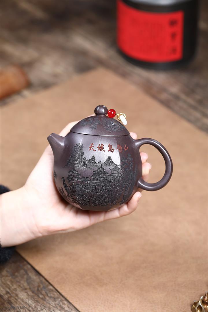 【作品介紹】此款壺形線條流暢,壺把,壺嘴,壺身壹氣呵成栩栩如生,是收藏把玩的好壺,泥料色澤古樸典雅,日久使用,漸露鋒芒,養成變化快,溫潤莊重,用其泡茶,使用的年代久,壺身就溫潤,泡出來的茶湯也就醇郁芳馨。