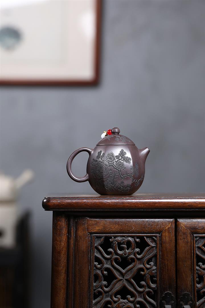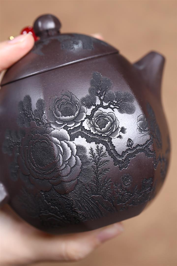 600cc原礦龍骨金砂柴燒牡丹德鐘泡茶壺POT9309