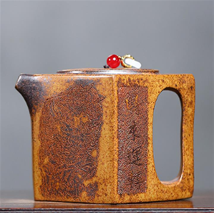 【泥料特點】砂土氣重,似淳實農民,日久使用,漸露鋒芒,養成變化,溫潤莊重。紫砂是壹種雙重氣孔結構的多孔性材質,氣孔微細,密度高。用紫砂壺沏茶,不失原味,且香不渙散,得茶之真香真味。紫砂使用越久,壺身色澤越發光亮照人,氣韻溫雅。紫砂壺長久使用器身會因撫摸擦拭,變得越發溫潤光澤。