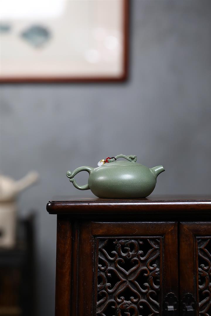260cc原礦豆青砂如意扁西施泡茶壺POT9315
