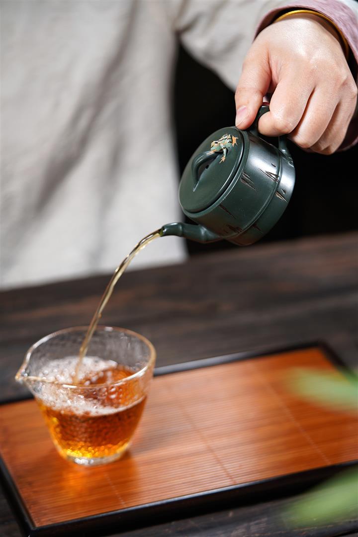 150cc原礦綠泥蛙趣竹節茶壺POT9341