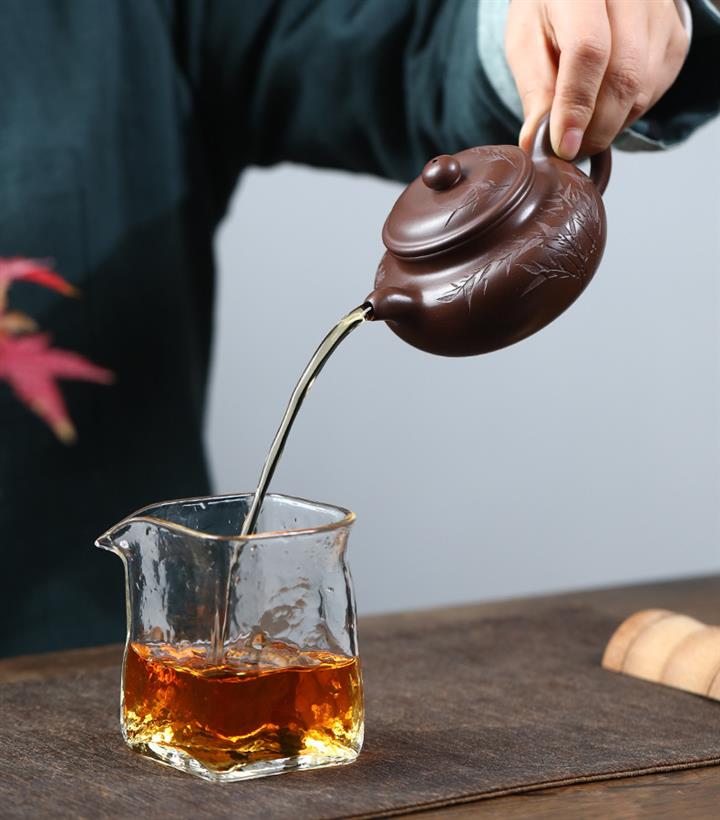 【泥料特點】砂土氣重,似淳實農民,日久使用,漸露鋒芒,養成變化,溫潤莊重。紫砂是壹種雙重氣孔結構的多孔性材質,氣孔微細,密度高。用紫砂壺沏茶,不失原味,且香不渙散,得茶之真香真味。紫砂使用越久,壺身色澤越發光亮照人,氣韻溫雅。紫砂壺長久使用器身會因撫摸擦拭,變得越發溫潤光澤。