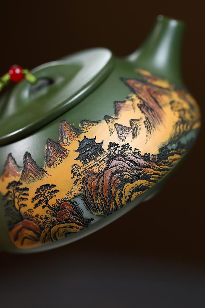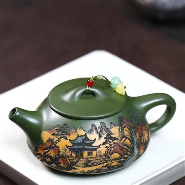 230cc原礦優質綠泥彩秀山河泡茶壺POT9350