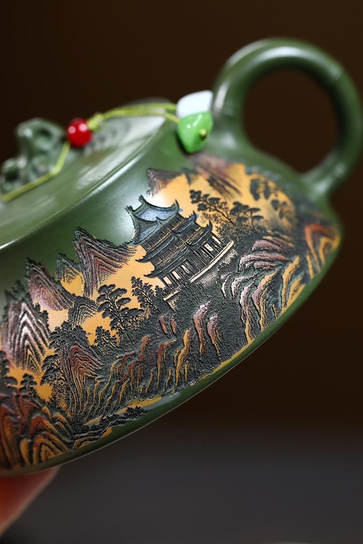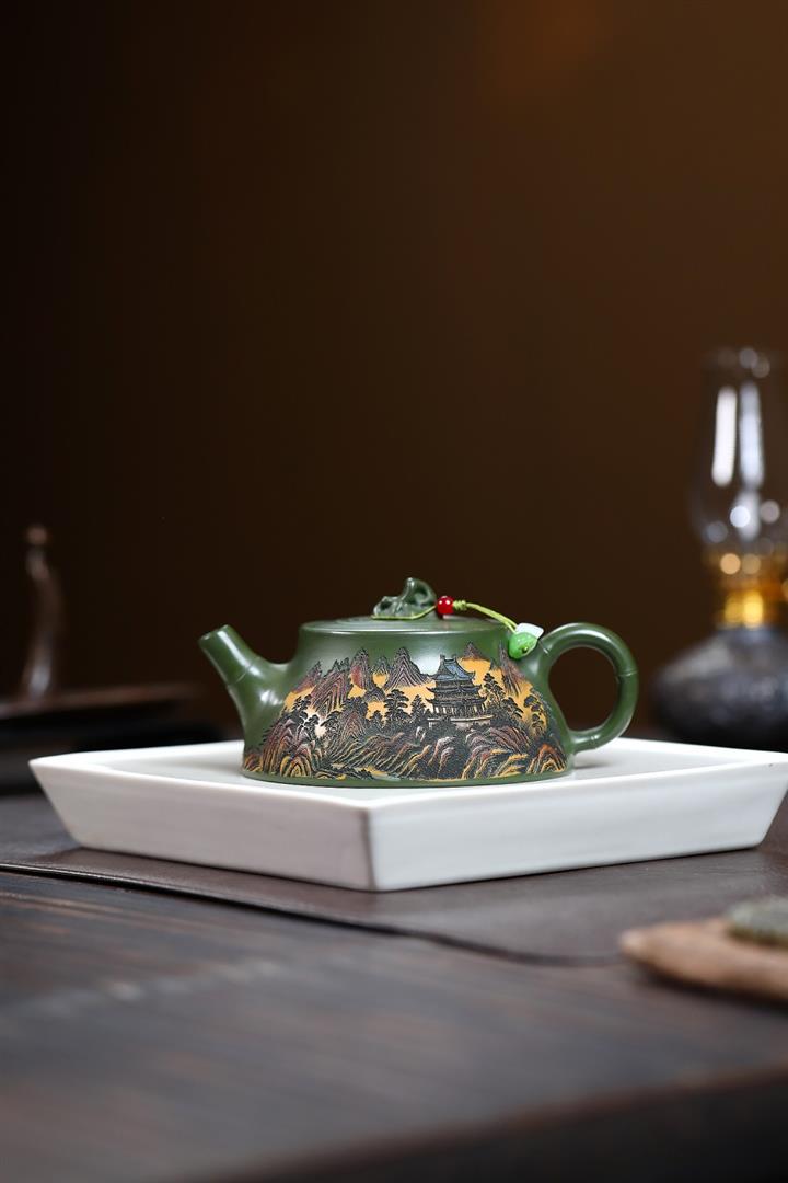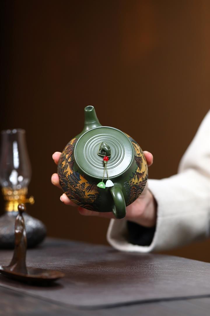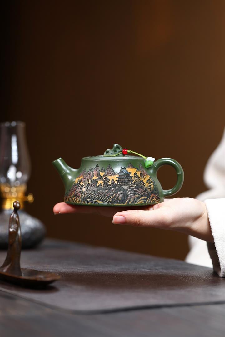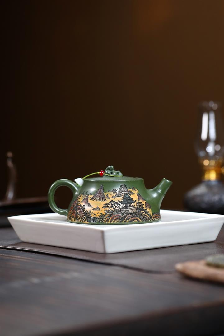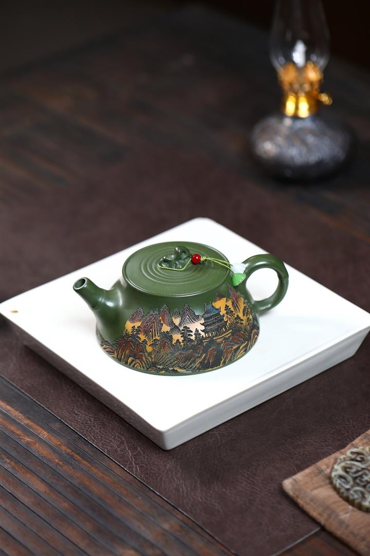 230cc原礦優質綠泥彩秀山河泡茶壺POT9350