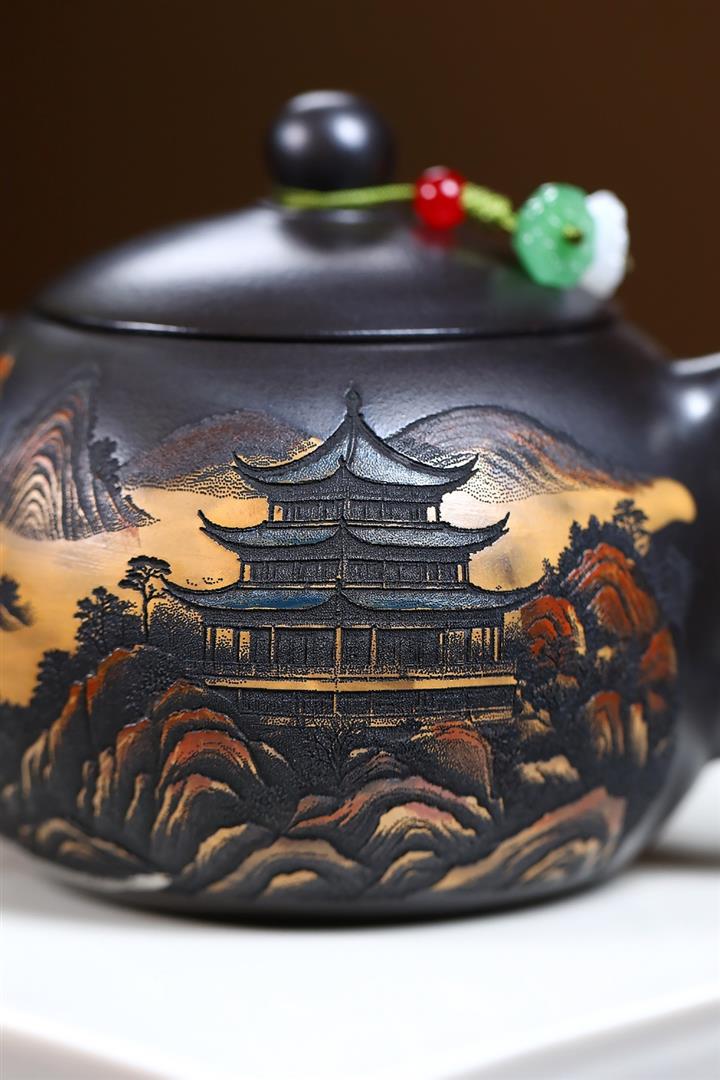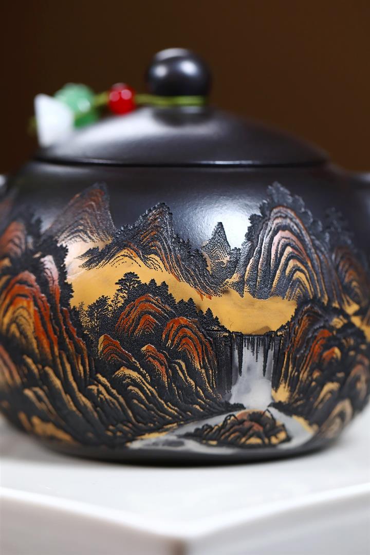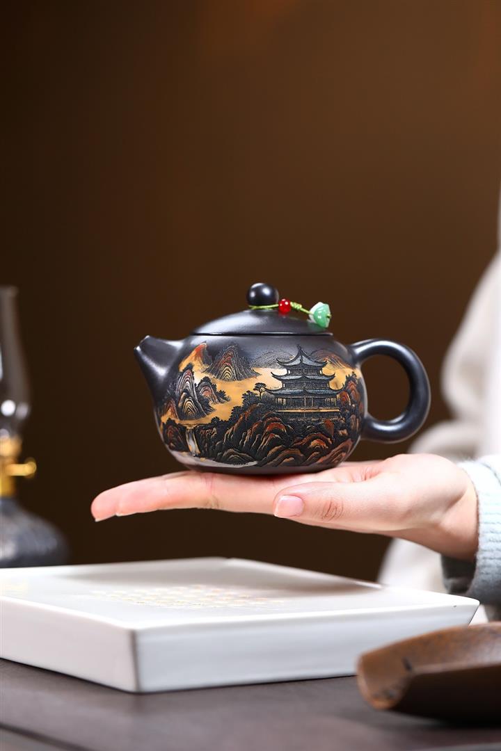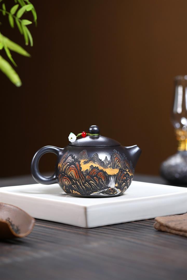 230cc原礦優質綠泥錦繡寒江泡茶壺POT9368