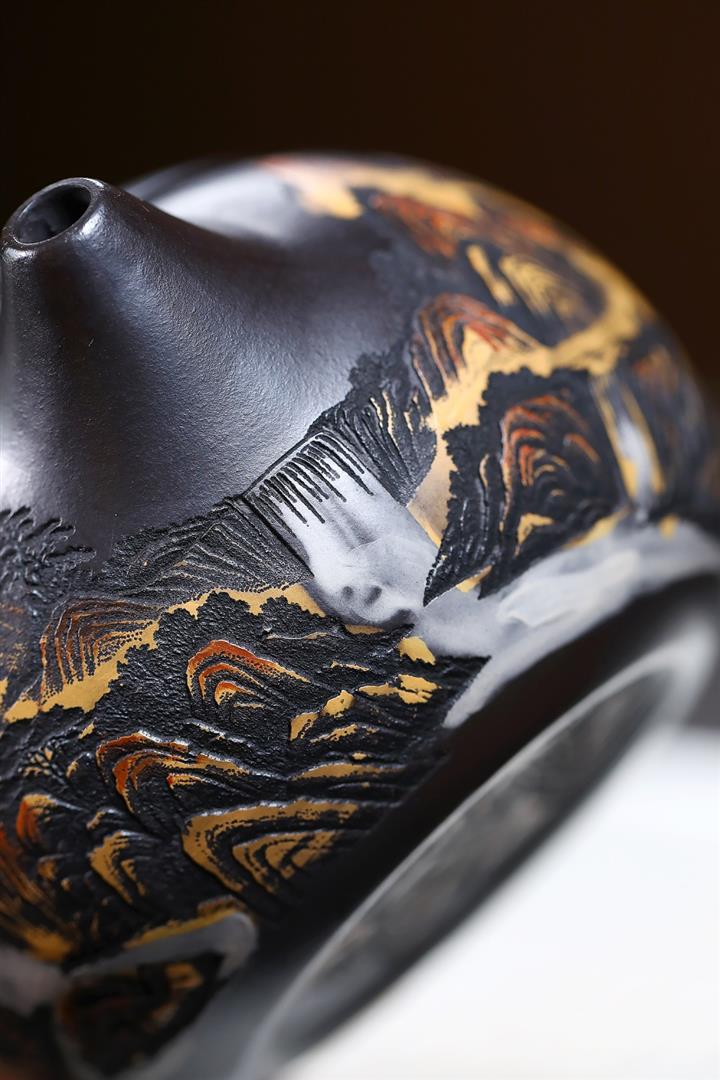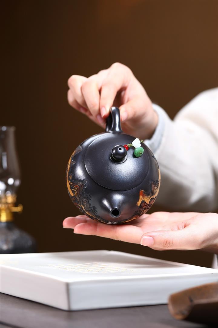 【作品介紹】此款壺形線條流暢,壺把,壺嘴,壺身壹氣呵成栩栩如生,是收藏把玩的好壺,泥料色澤古樸典雅,日久使用,漸露鋒芒,養成變化快,溫潤莊重,用其泡茶,使用的年代久,壺身就溫潤,泡出來的茶湯也就醇郁芳馨。