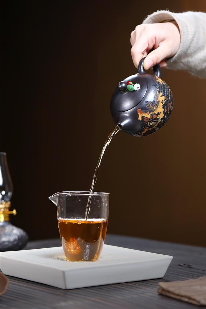 【泥料特點】砂土氣重,似淳實農民,日久使用,漸露鋒芒,養成變化,溫潤莊重。紫砂是壹種雙重氣孔結構的多孔性材質,氣孔微細,密度高。用紫砂壺沏茶,不失原味,且香不渙散,得茶之真香真味。紫砂使用越久,壺身色澤越發光亮照人,氣韻溫雅。紫砂壺長久使用器身會因撫摸擦拭,變得越發溫潤光澤。