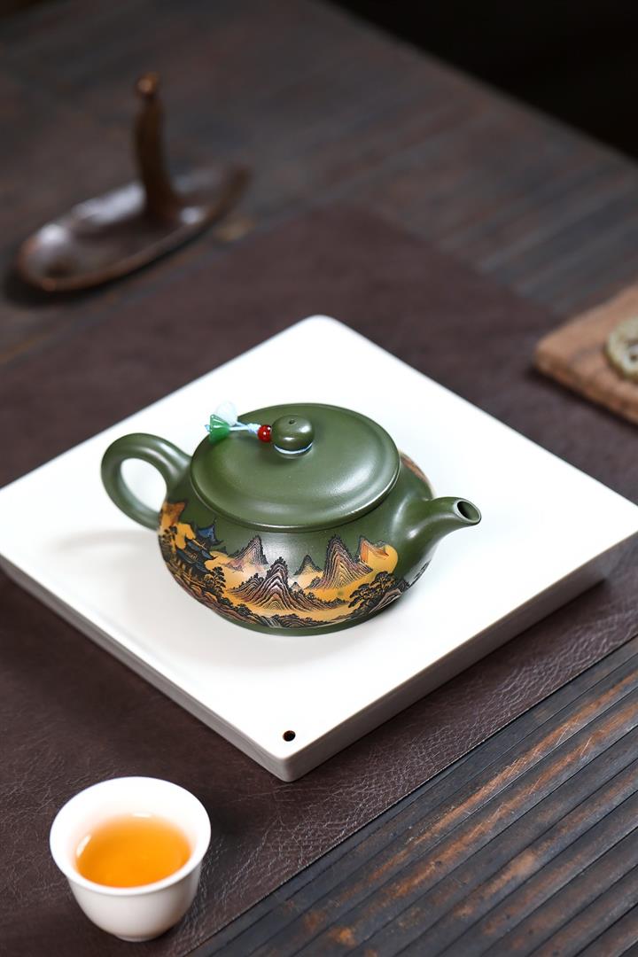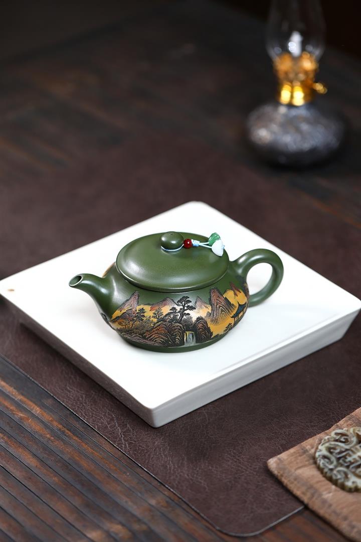 230cc原礦優質綠泥錦繡寒江泡茶壺POT9368