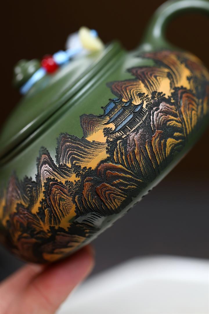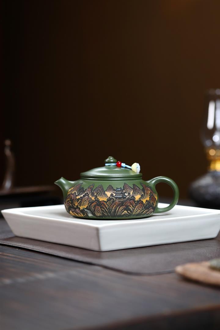 230cc原礦優質綠泥山河寒江泡茶壺POT9369