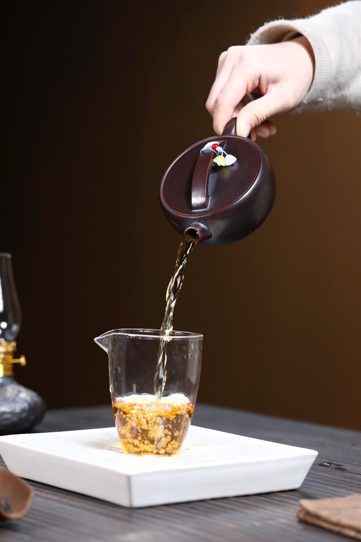 【泥料特點】砂土氣重,似淳實農民,日久使用,漸露鋒芒,養成變化,溫潤莊重。紫砂是壹種雙重氣孔結構的多孔性材質,氣孔微細,密度高。用紫砂壺沏茶,不失原味,且香不渙散,得茶之真香真味。紫砂使用越久,壺身色澤越發光亮照人,氣韻溫雅。紫砂壺長久使用器身會因撫摸擦拭,變得越發溫潤光澤。