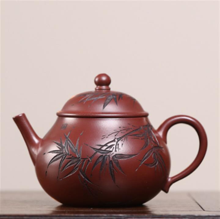 250cc原礦紅降坡虛懷竹影竹鼎泡茶壺POT9383