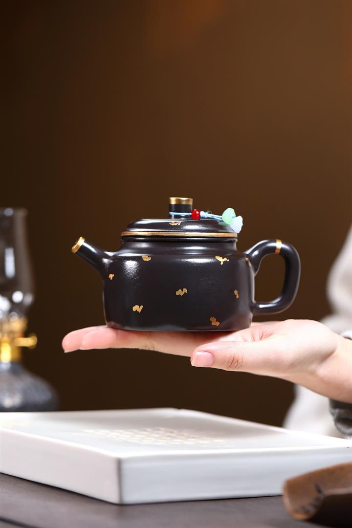 175cc原礦朱泥大紅袍灑金小潘壺泡茶壺POT9390