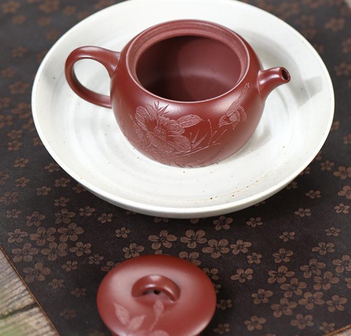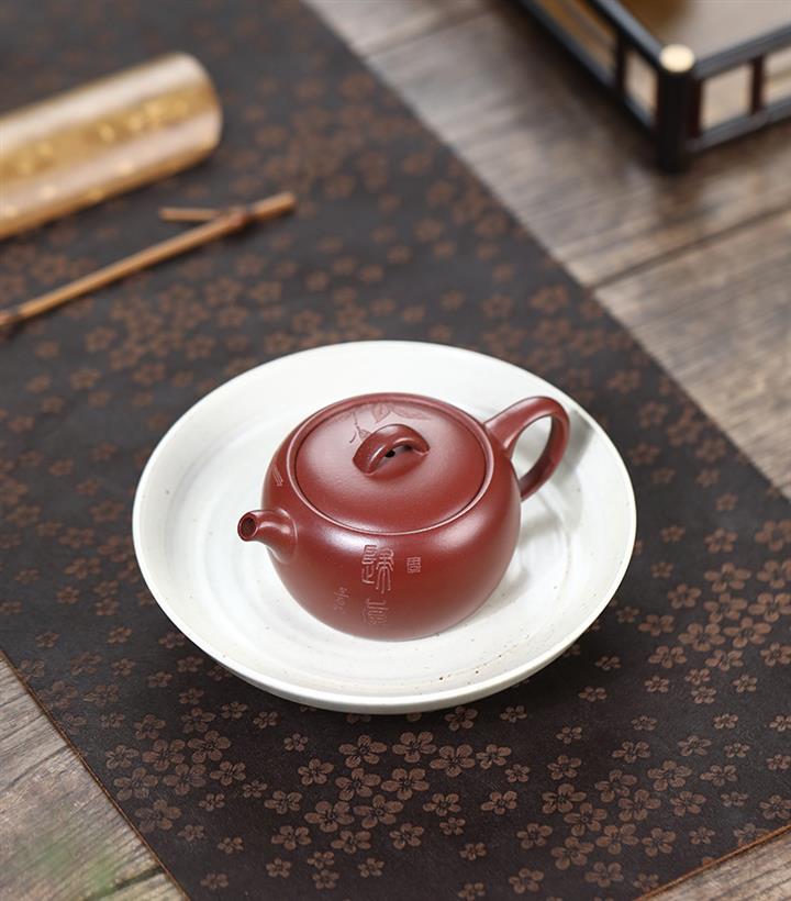 【泥料特點】砂土氣重,似淳實農民,日久使用,漸露鋒芒,養成變化,溫潤莊重。紫砂是壹種雙重氣孔結構的多孔性材質,氣孔微細,密度高。用紫砂壺沏茶,不失原味,且香不渙散,得茶之真香真味。紫砂使用越久,壺身色澤越發光亮照人,氣韻溫雅。紫砂壺長久使用器身會因撫摸擦拭,變得越發溫潤光澤。