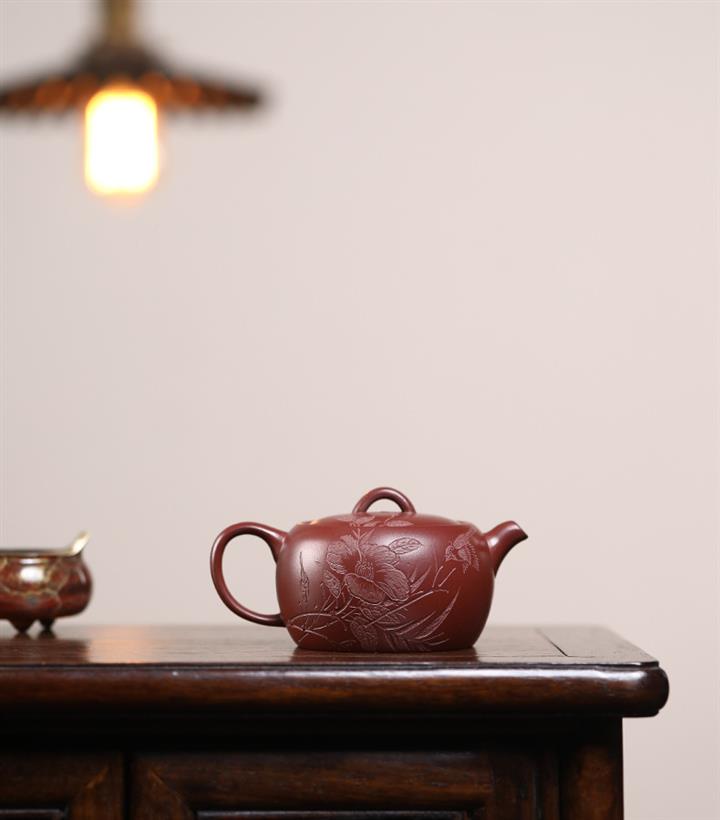 300cc原礦大紅袍松鶴延年牛蓋蓮子泡茶壺POT9399