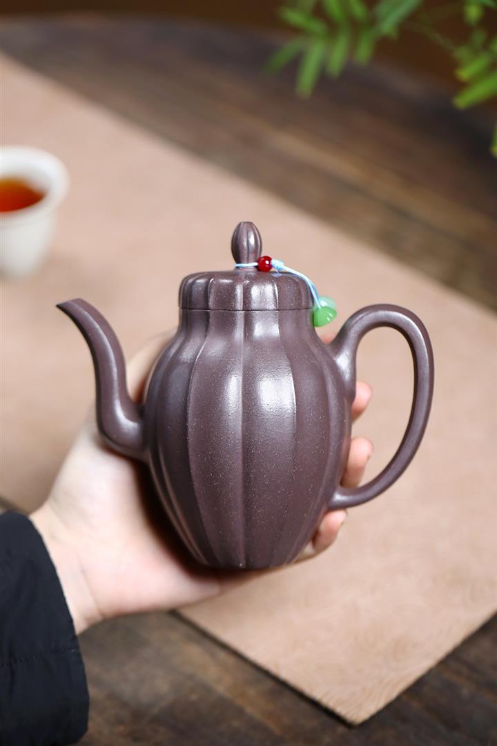 250cc原礦紫泥鏤空筋紋德鐘泡茶壺POT9417