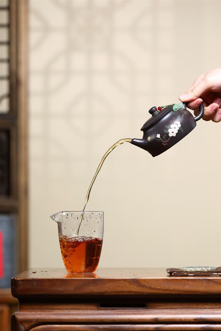 【泥料特點】砂土氣重,似淳實農民,日久使用,漸露鋒芒,養成變化,溫潤莊重。紫砂是壹種雙重氣孔結構的多孔性材質,氣孔微細,密度高。用紫砂壺沏茶,不失原味,且香不渙散,得茶之真香真味。紫砂使用越久,壺身色澤越發光亮照人,氣韻溫雅。紫砂壺長久使用器身會因撫摸擦拭,變得越發溫潤光澤。