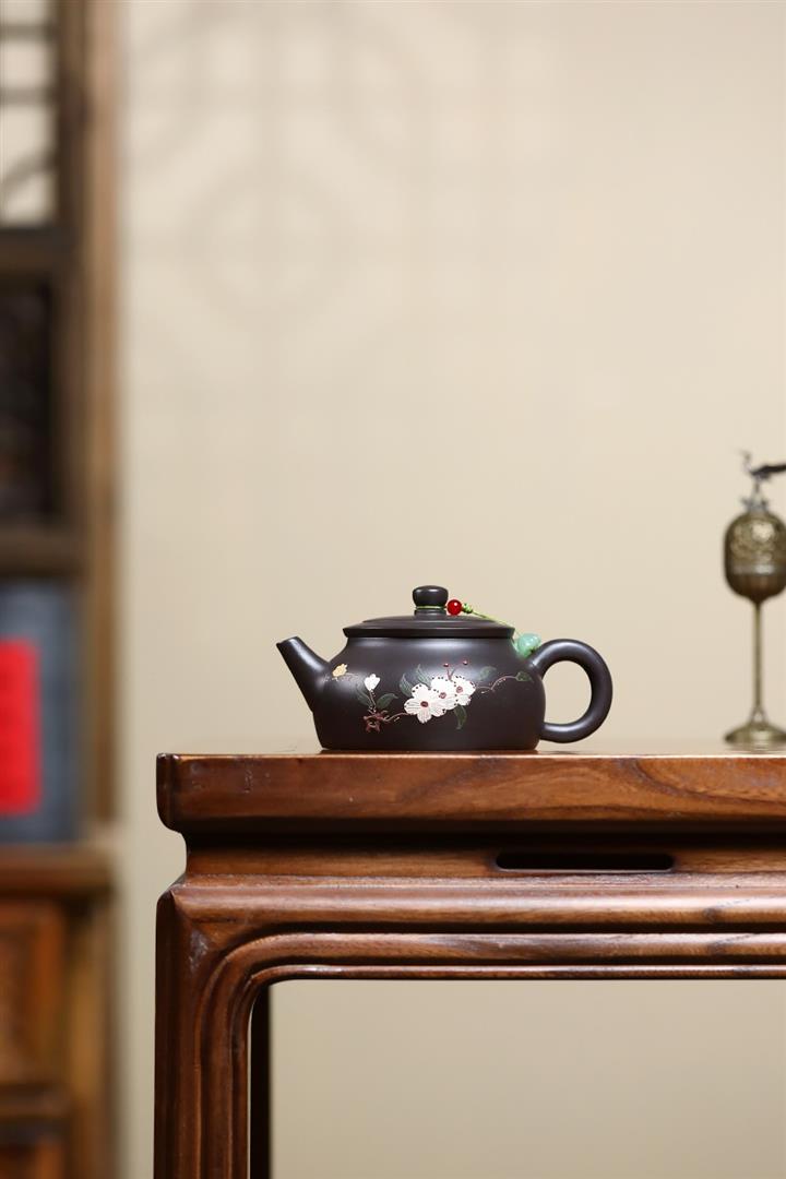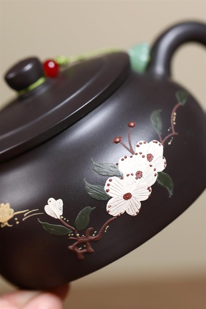 210cc原礦黑朱泥井欄蝶夢泡茶壺POT9409