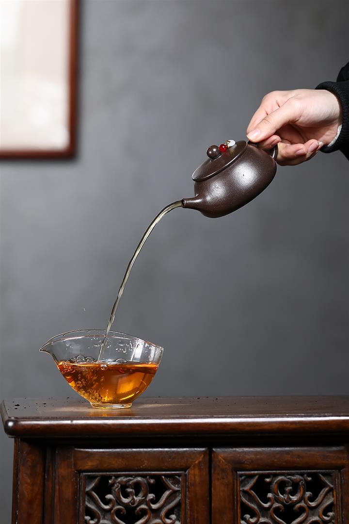 【泥料特點】砂土氣重,似淳實農民,日久使用,漸露鋒芒,養成變化,溫潤莊重。紫砂是壹種雙重氣孔結構的多孔性材質,氣孔微細,密度高。用紫砂壺沏茶,不失原味,且香不渙散,得茶之真香真味。紫砂使用越久,壺身色澤越發光亮照人,氣韻溫雅。紫砂壺長久使用器身會因撫摸擦拭,變得越發溫潤光澤。