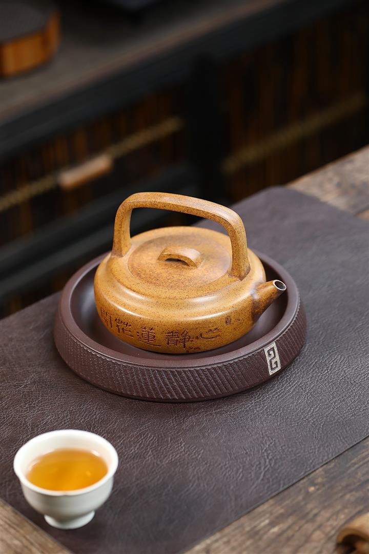 【泥料特點】砂土氣重,似淳實農民,日久使用,漸露鋒芒,養成變化,溫潤莊重。紫砂是壹種雙重氣孔結構的多孔性材質,氣孔微細,密度高。用紫砂壺沏茶,不失原味,且香不渙散,得茶之真香真味。紫砂使用越久,壺身色澤越發光亮照人,氣韻溫雅。紫砂壺長久使用器身會因撫摸擦拭,變得越發溫潤光澤。