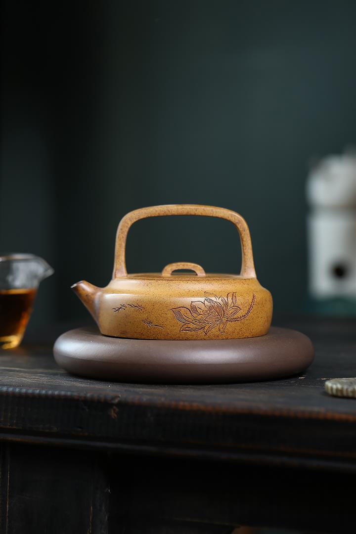 280cc原礦龍骨金砂高溫蓮花提梁壺POT9414