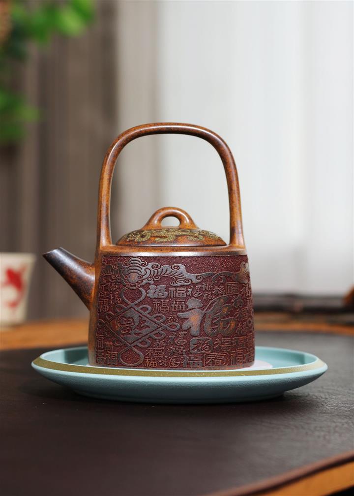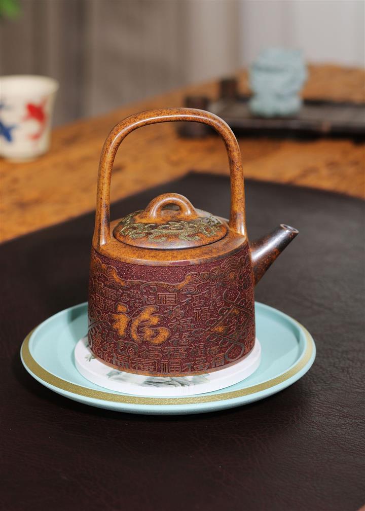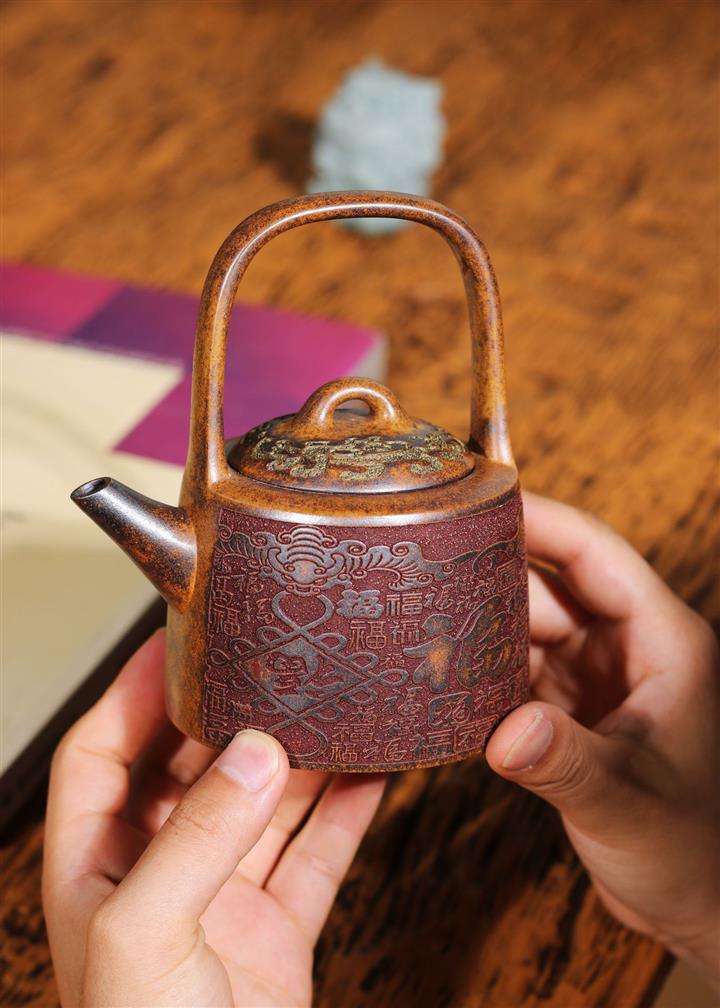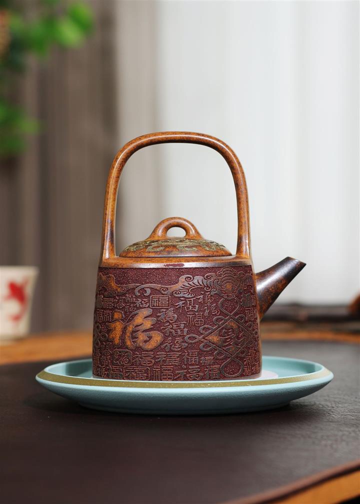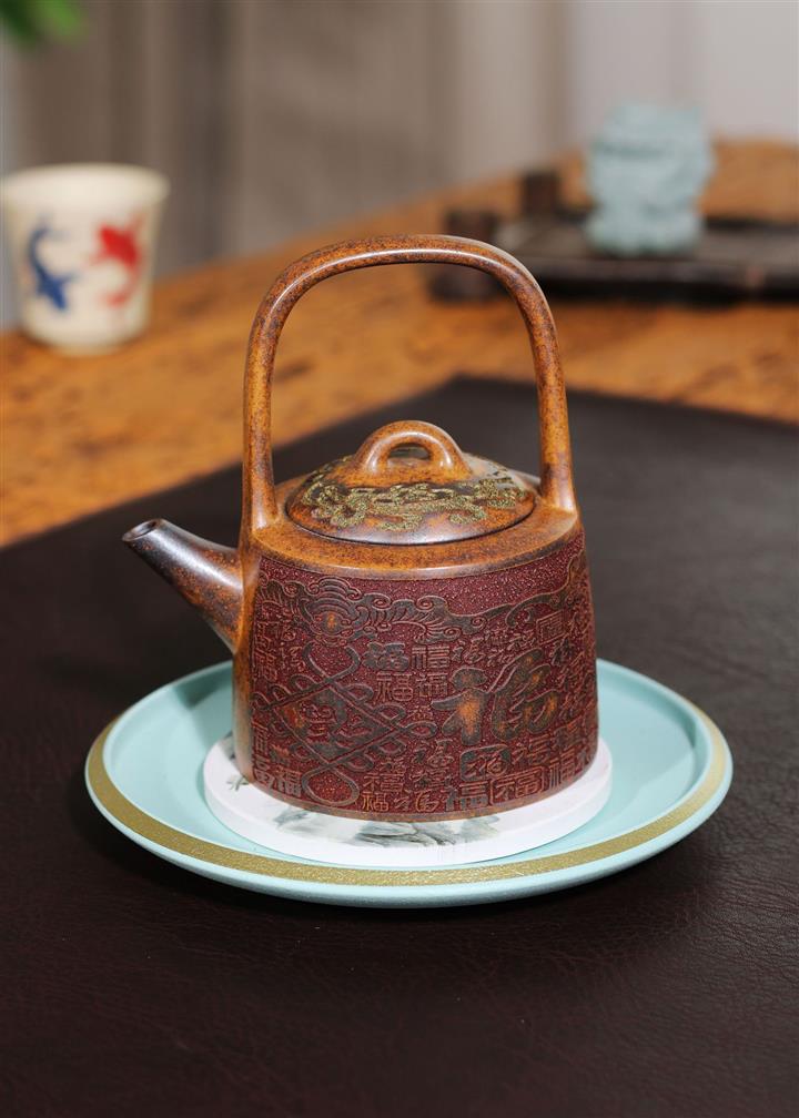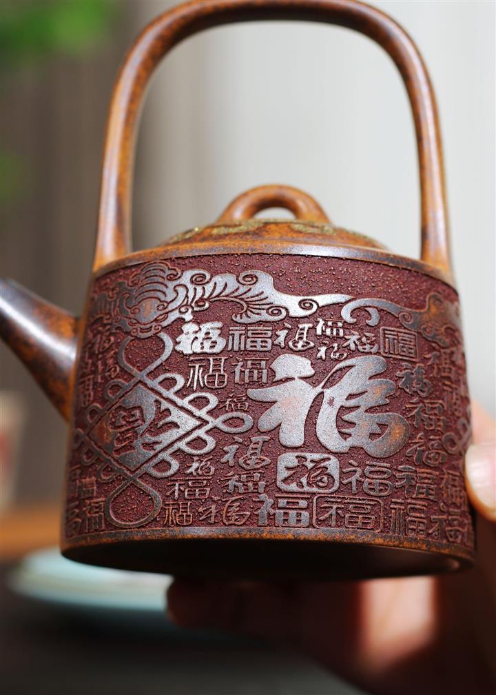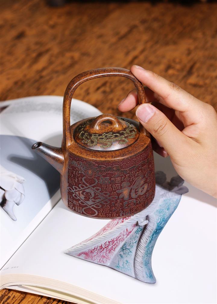 290cc原礦龍骨金砂百福鳳鳴提梁茶壺POT9415
