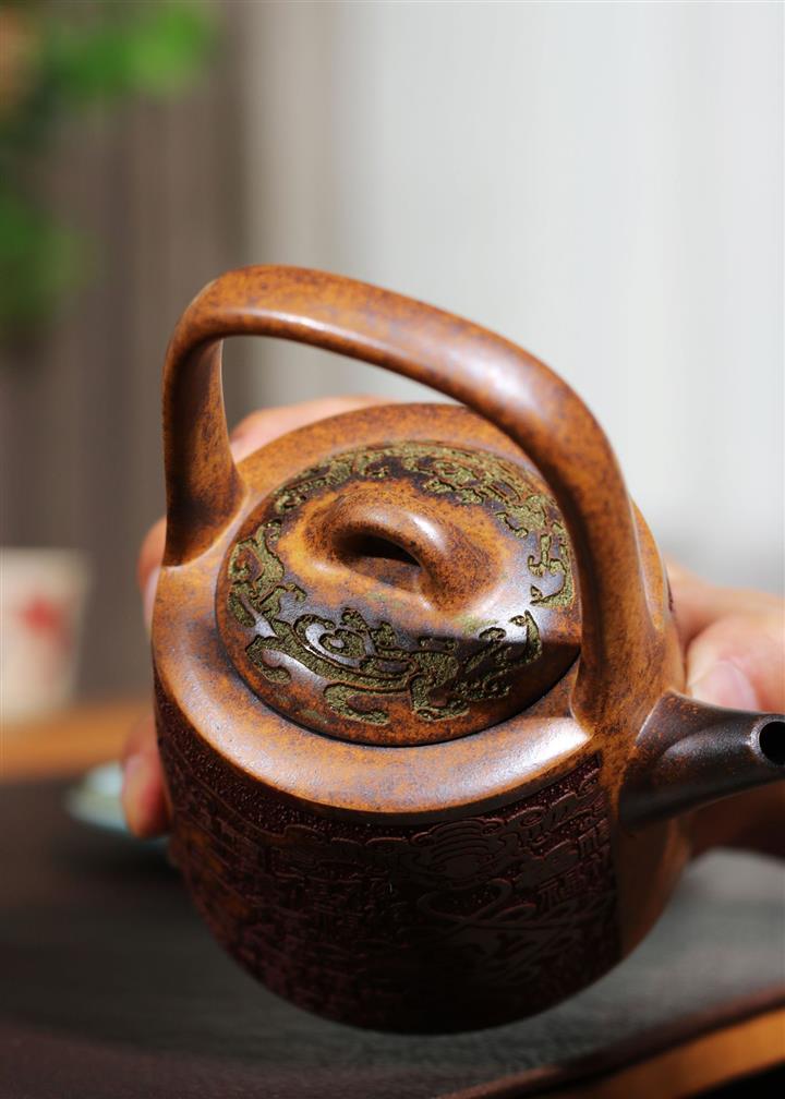 【泥料特點】砂土氣重,似淳實農民,日久使用,漸露鋒芒,養成變化,溫潤莊重。紫砂是壹種雙重氣孔結構的多孔性材質,氣孔微細,密度高。用紫砂壺沏茶,不失原味,且香不渙散,得茶之真香真味。紫砂使用越久,壺身色澤越發光亮照人,氣韻溫雅。紫砂壺長久使用器身會因撫摸擦拭,變得越發溫潤光澤。
