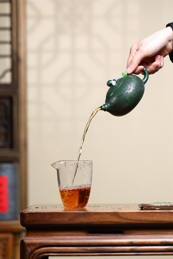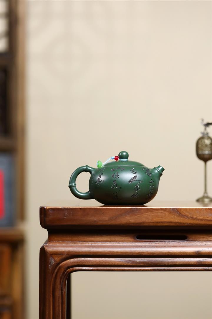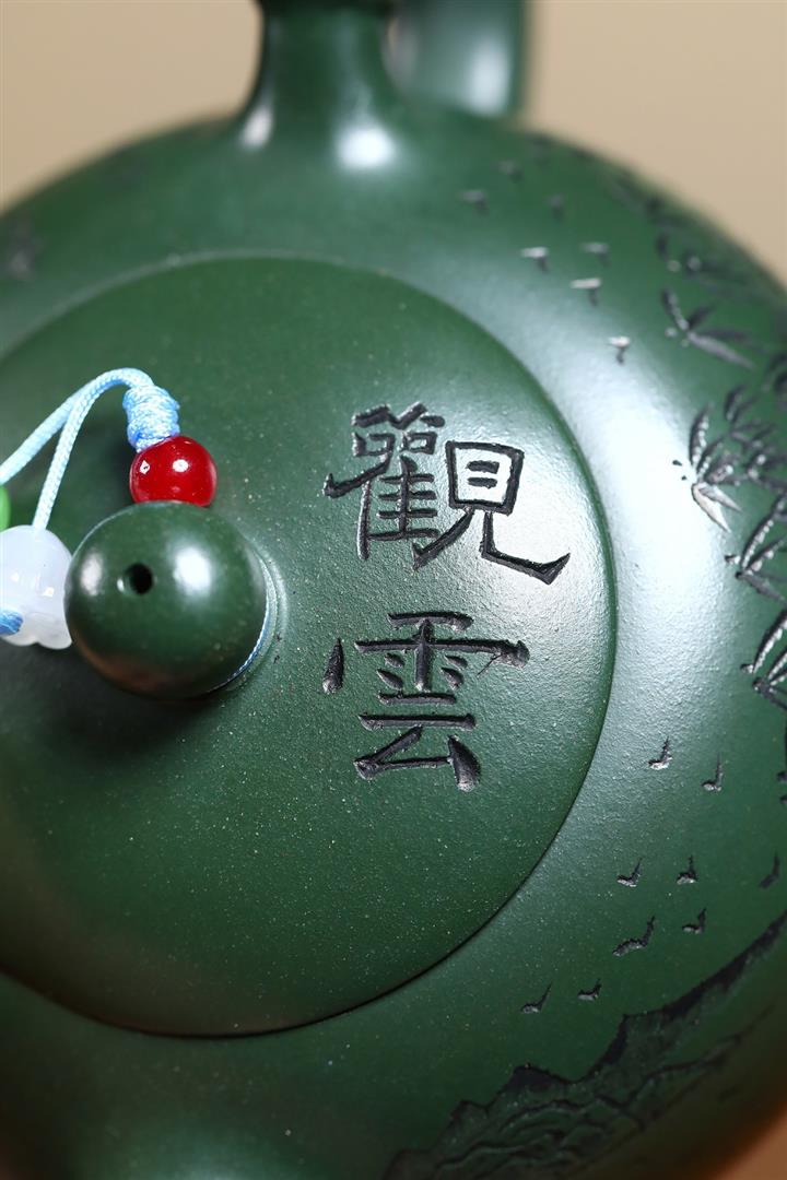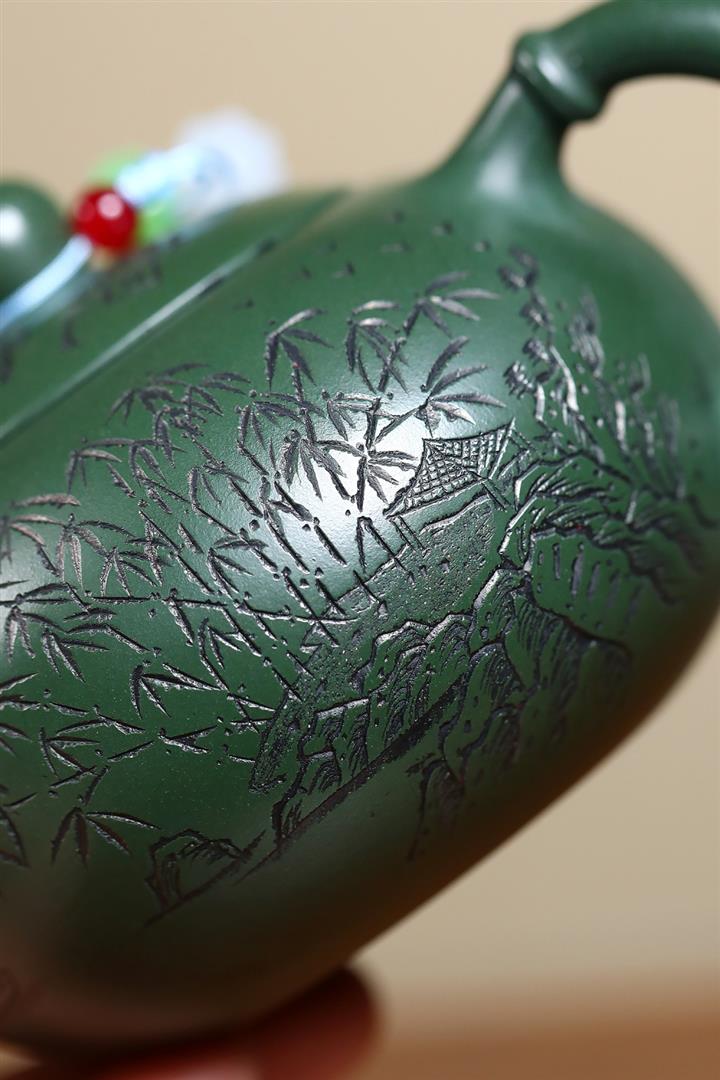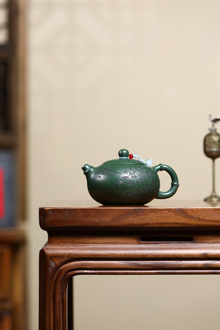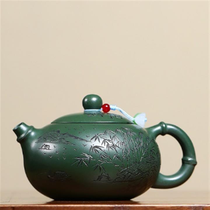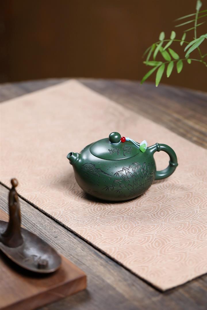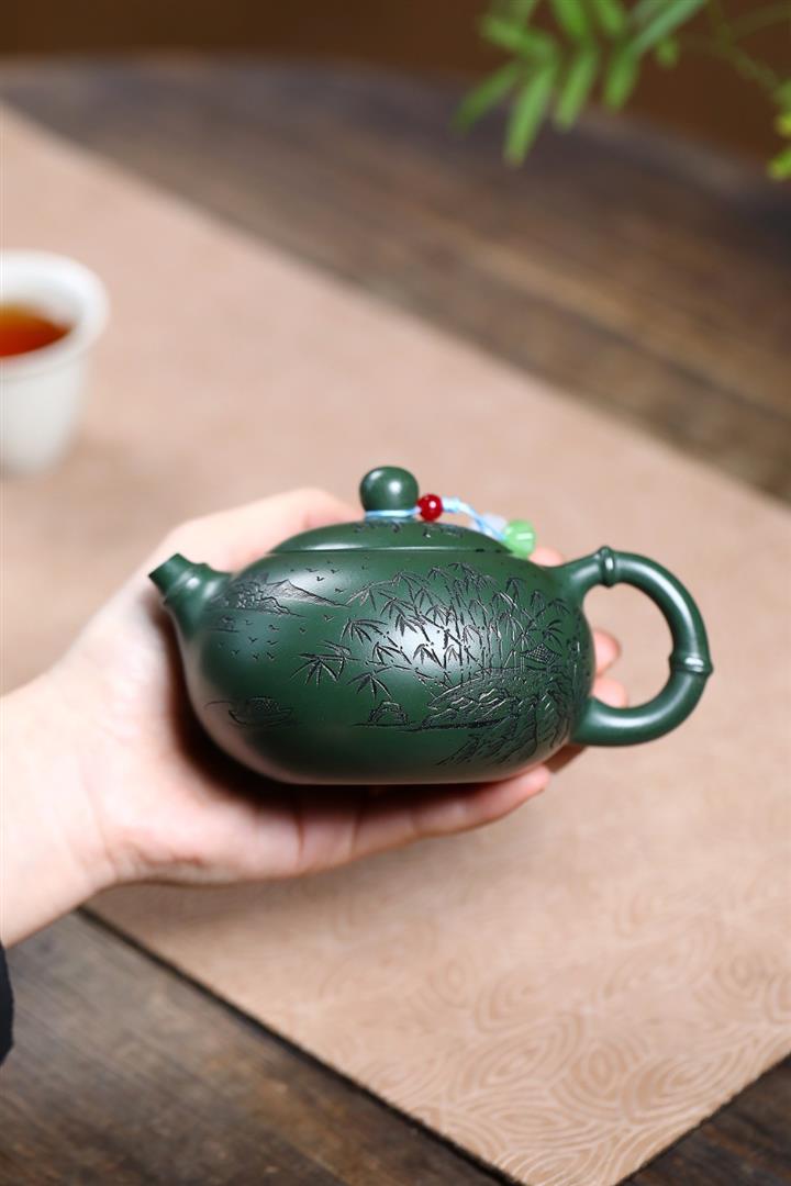 250cc原礦綠泥竹林清影泡茶壺POT9419