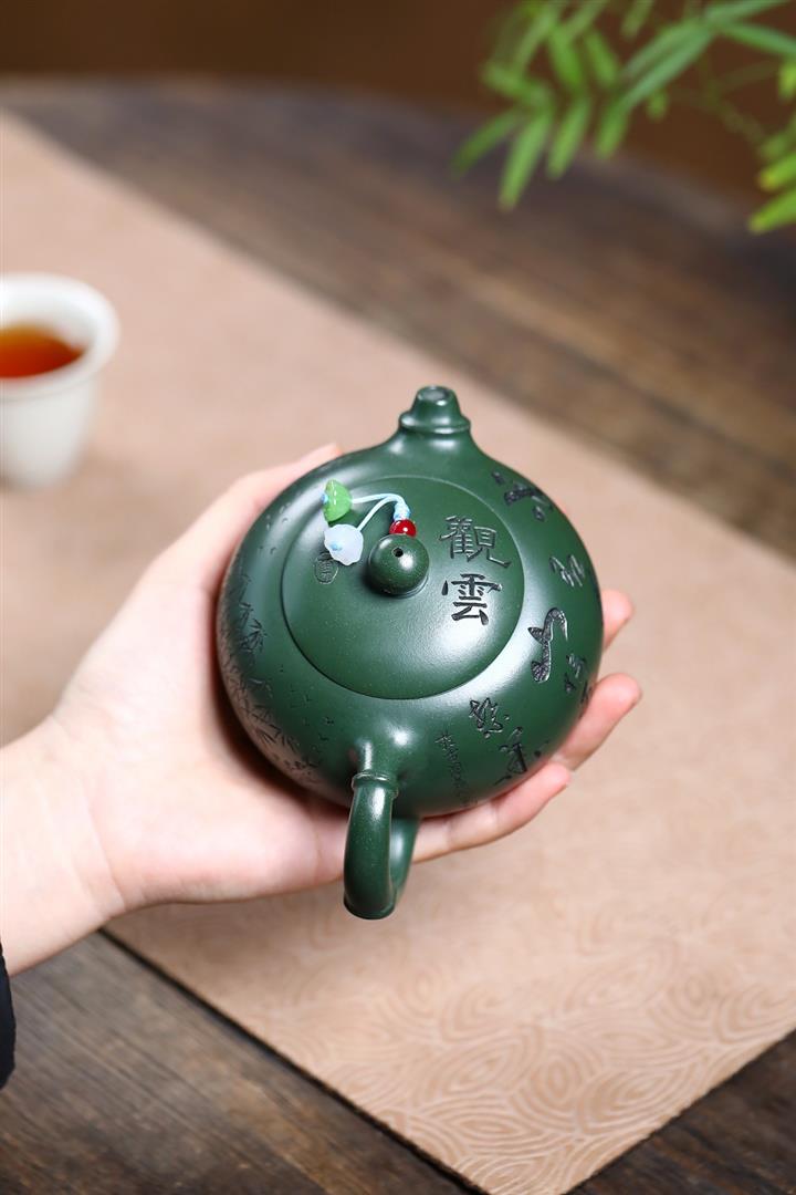 300cc原礦墨綠泥龍鳳呈祥漢瓦茶壺POT9428