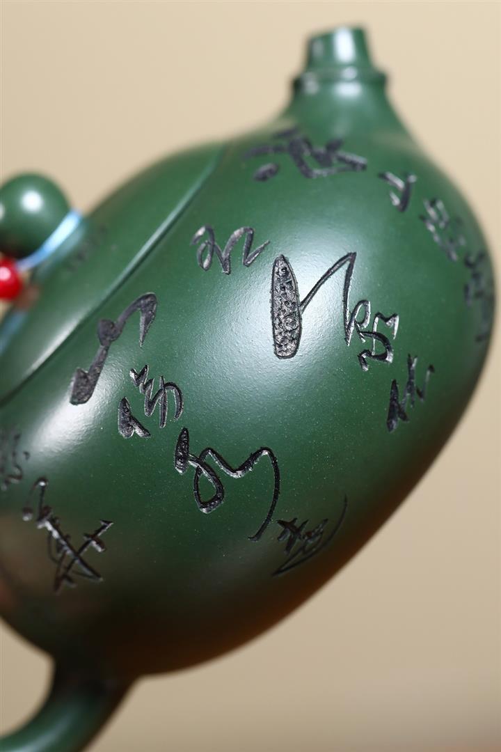 410cc原礦綠泥金縷報春泡茶壺POT9420