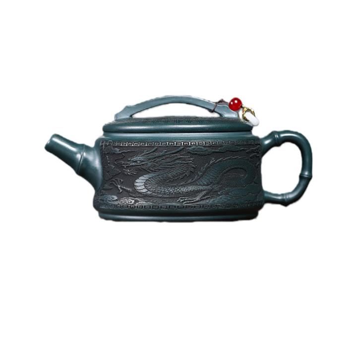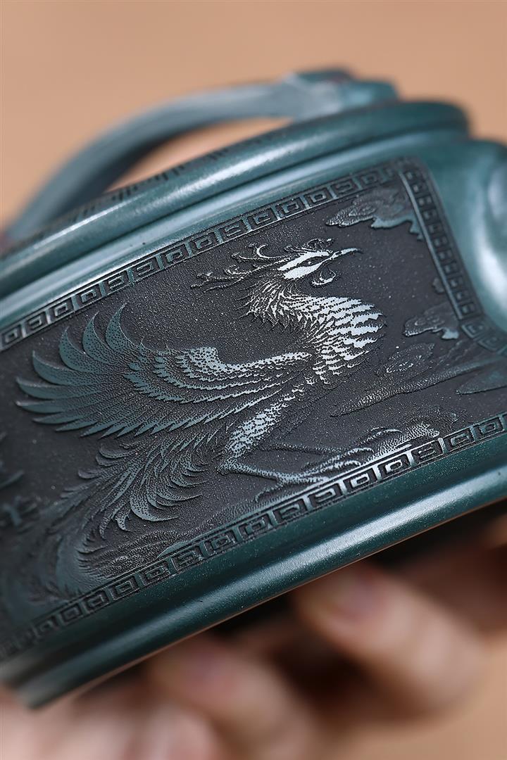 300cc原礦墨綠泥龍鳳呈祥漢瓦茶壺POT9428
