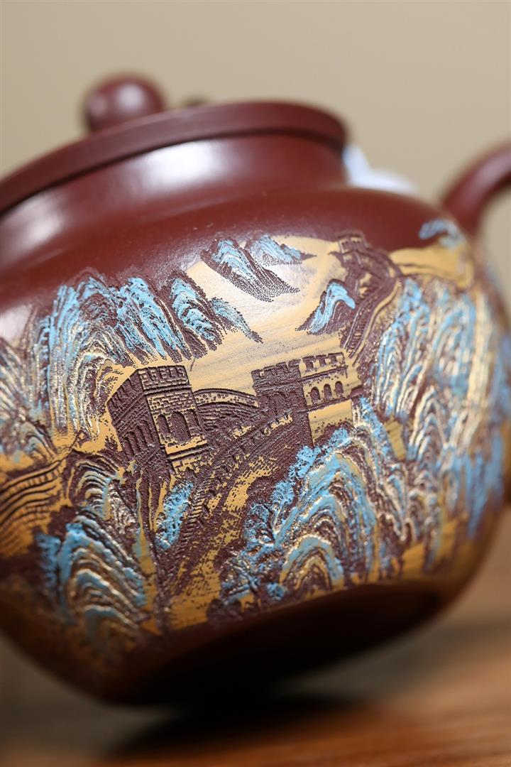 【泥料特點】砂土氣重,似淳實農民,日久使用,漸露鋒芒,養成變化,溫潤莊重。紫砂是壹種雙重氣孔結構的多孔性材質,氣孔微細,密度高。用紫砂壺沏茶,不失原味,且香不渙散,得茶之真香真味。紫砂使用越久,壺身色澤越發光亮照人,氣韻溫雅。紫砂壺長久使用器身會因撫摸擦拭,變得越發溫潤光澤。