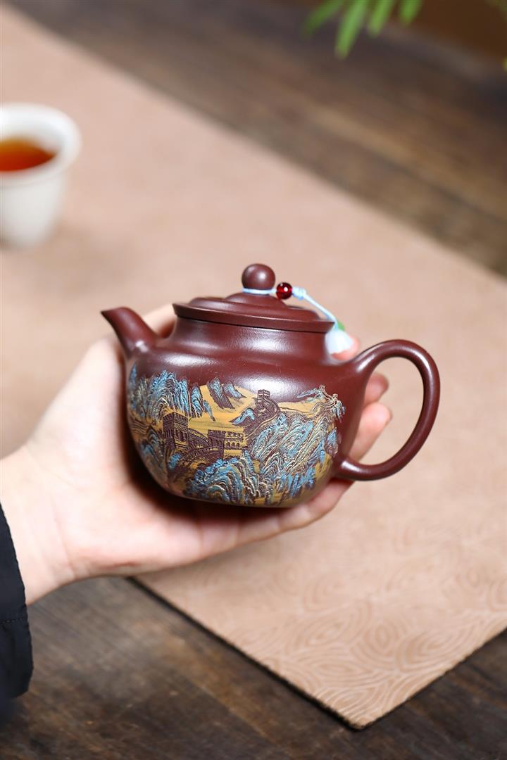 【作品介紹】此款壺形線條流暢,壺把,壺嘴,壺身壹氣呵成栩栩如生,是收藏把玩的好壺,泥料色澤古樸典雅,日久使用,漸露鋒芒,養成變化快,溫潤莊重,用其泡茶,使用的年代久,壺身就溫潤,泡出來的茶湯也就醇郁芳馨。
