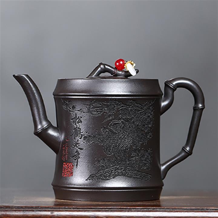 280cc原礦石黃松鶴延年竹節泡茶壺POT9439
