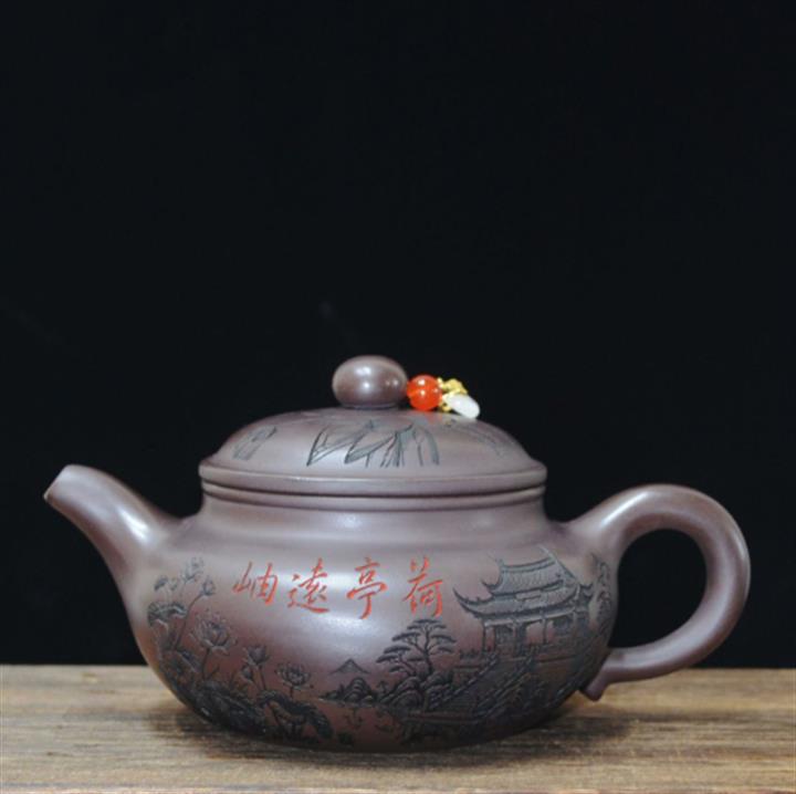 340cc原礦紫泥刻繪山水仿古泡茶壺POT9444
