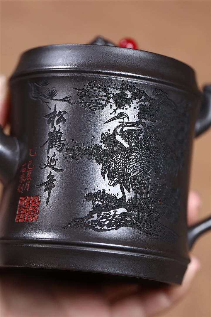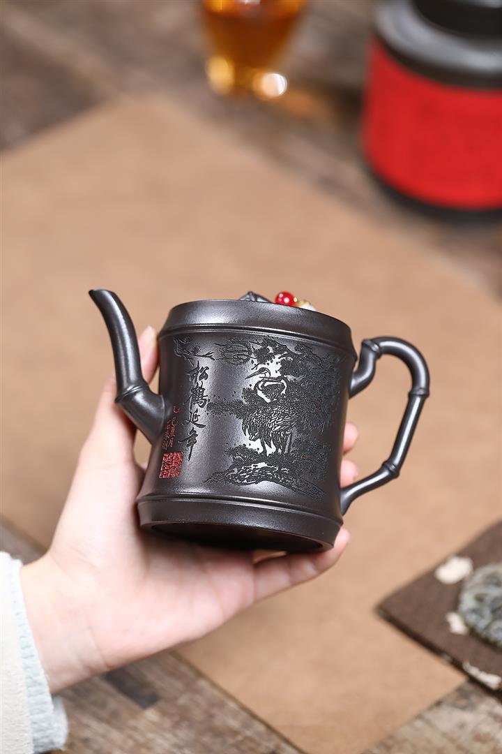 280cc原礦石黃松鶴延年竹節泡茶壺POT9439