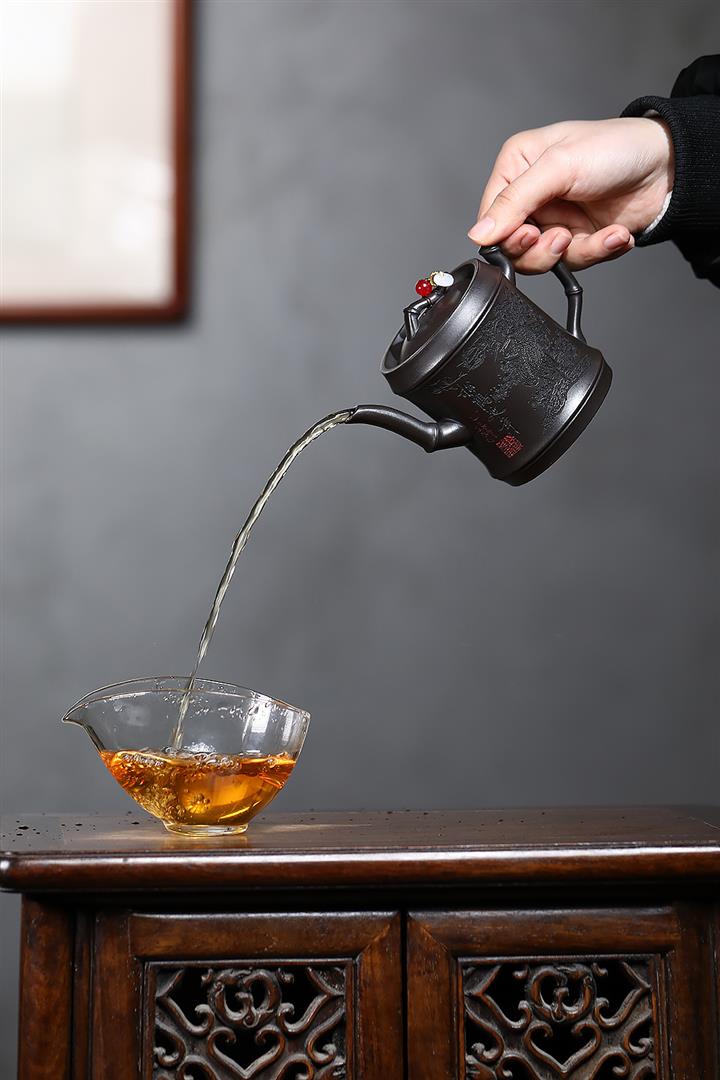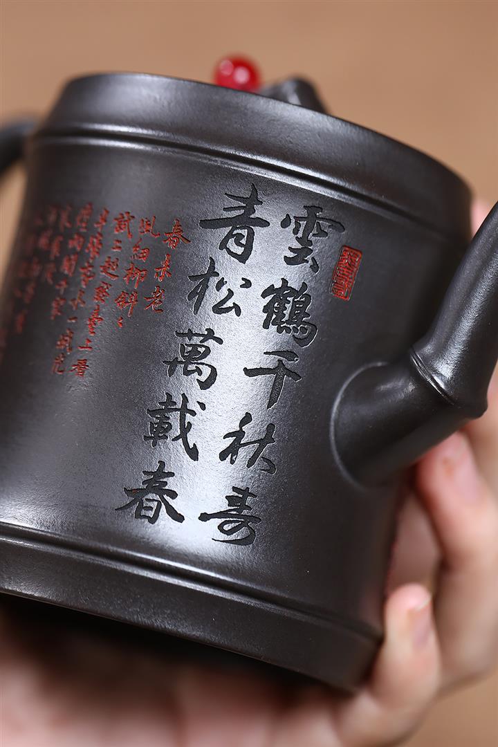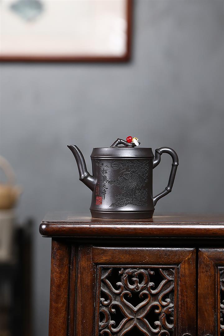340cc原礦紫泥刻繪山水仿古泡茶壺POT9444