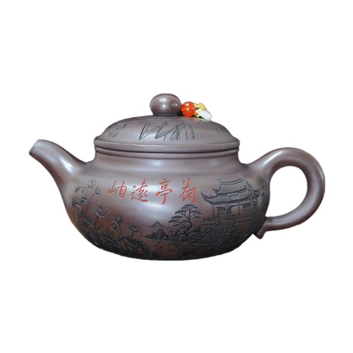 340cc原礦紫泥刻繪山水仿古泡茶壺POT9444