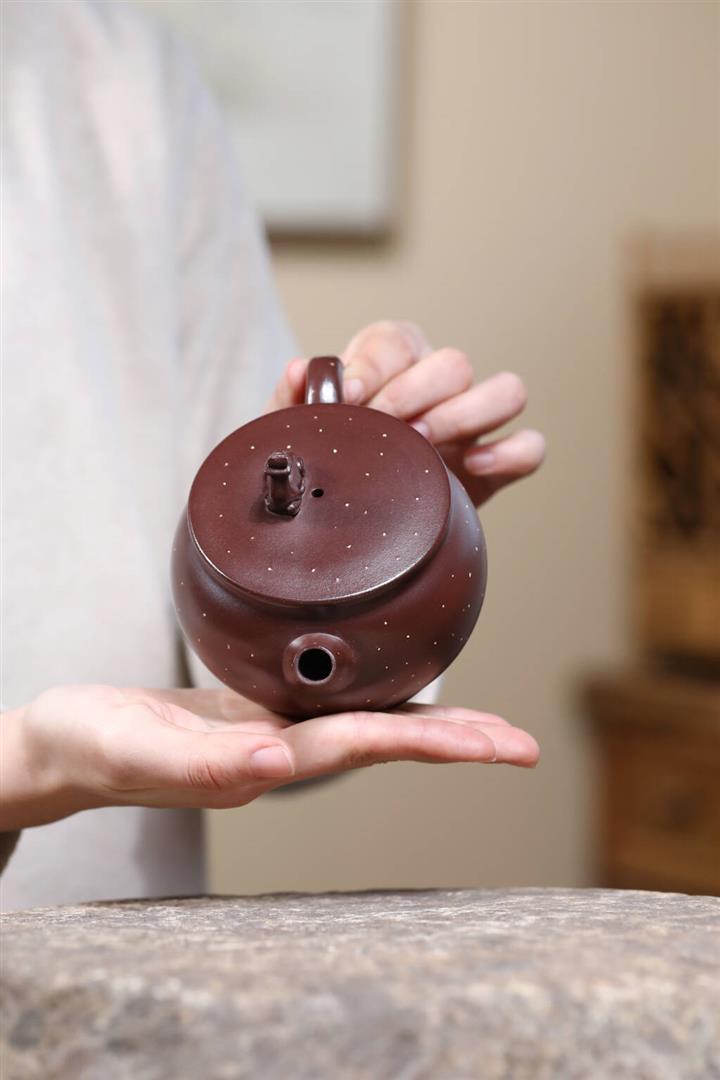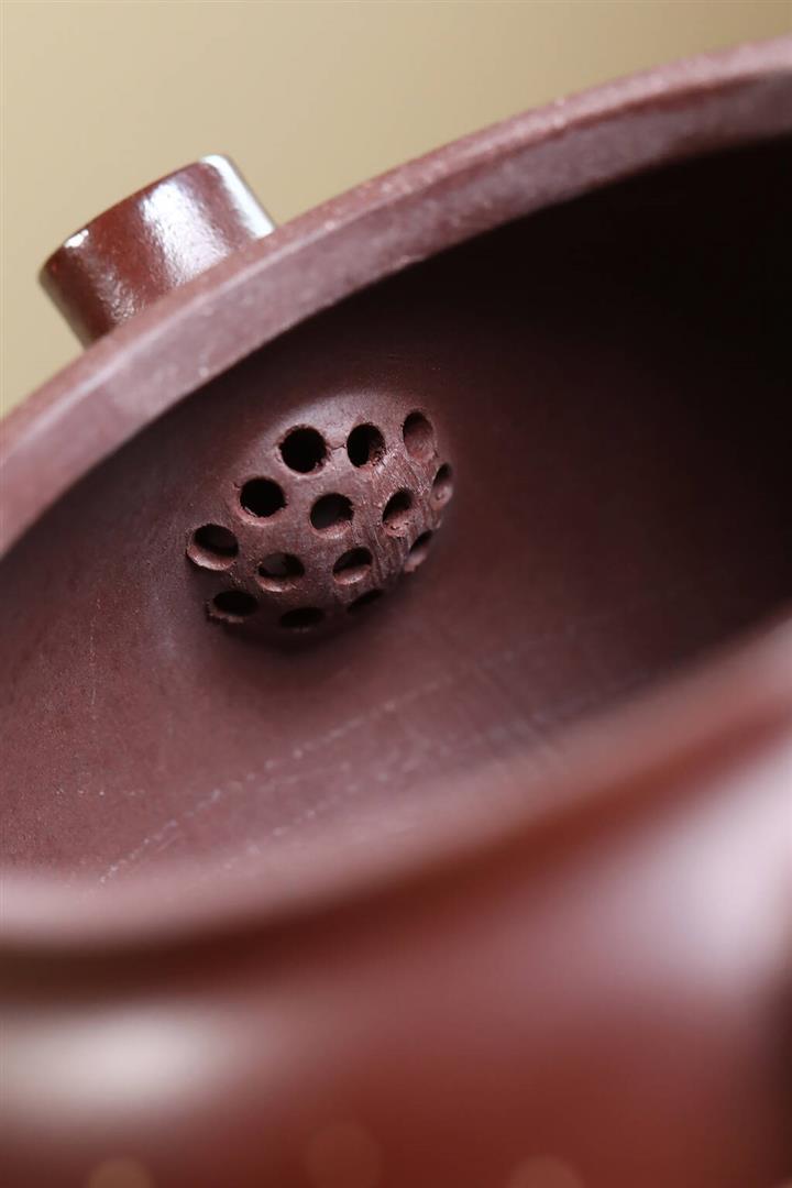 【泥料特點】砂土氣重,似淳實農民,日久使用,漸露鋒芒,養成變化,溫潤莊重。紫砂是壹種雙重氣孔結構的多孔性材質,氣孔微細,密度高。用紫砂壺沏茶,不失原味,且香不渙散,得茶之真香真味。紫砂使用越久,壺身色澤越發光亮照人,氣韻溫雅。紫砂壺長久使用器身會因撫摸擦拭,變得越發溫潤光澤。