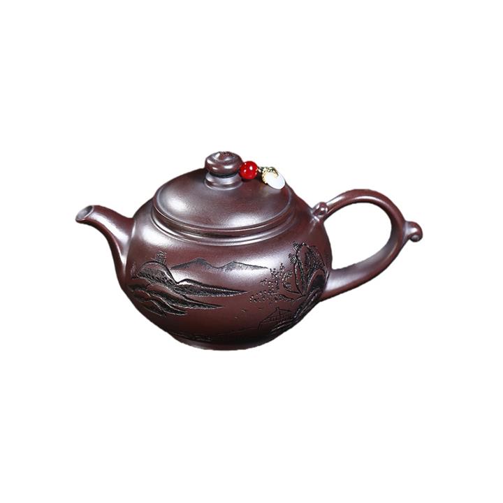 230cc原礦紫泥刻繪山水寒江泡茶壺POT9476