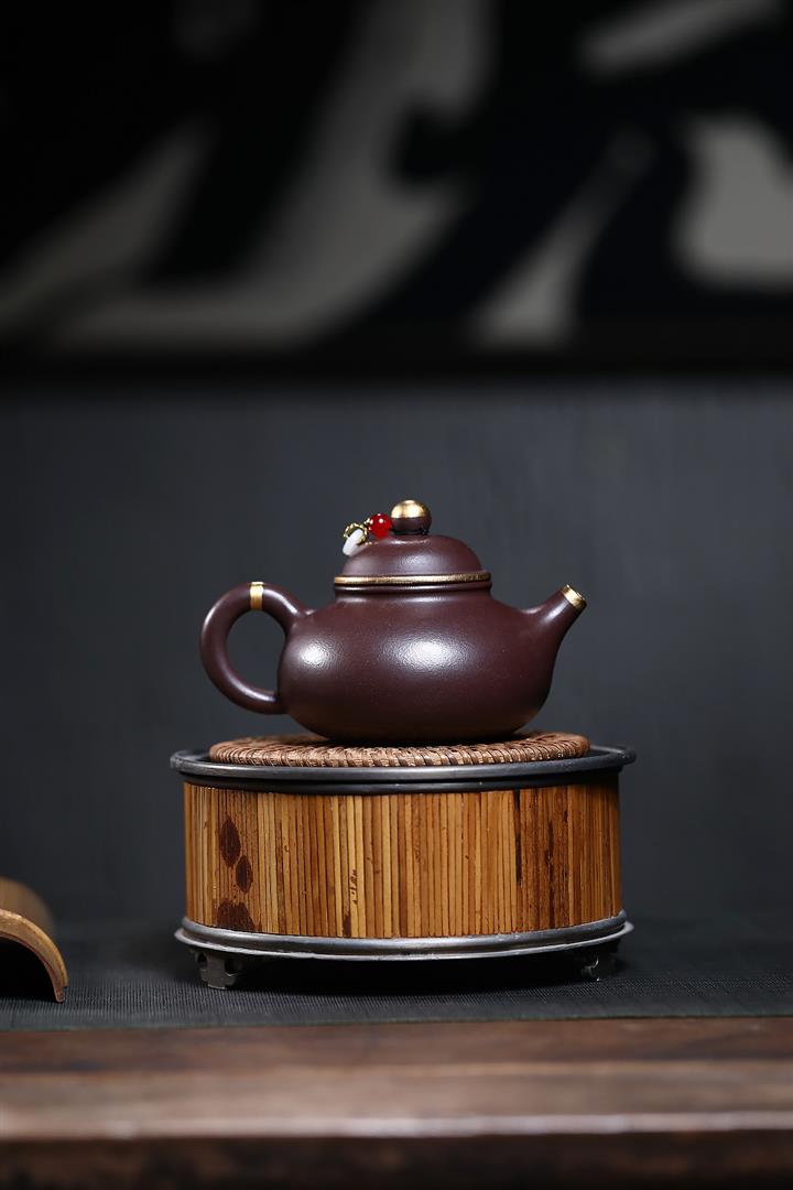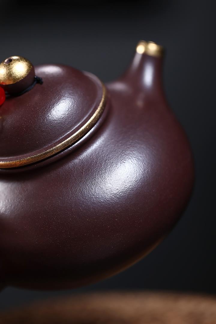 230cc原礦紫泥鑲金容天光素泡茶壺POT9474