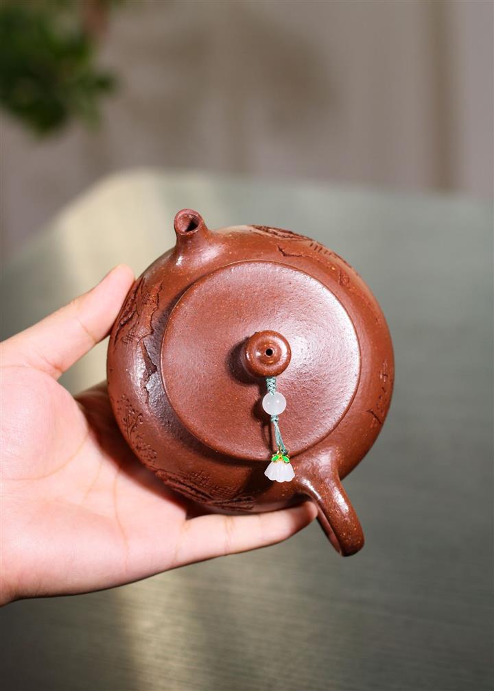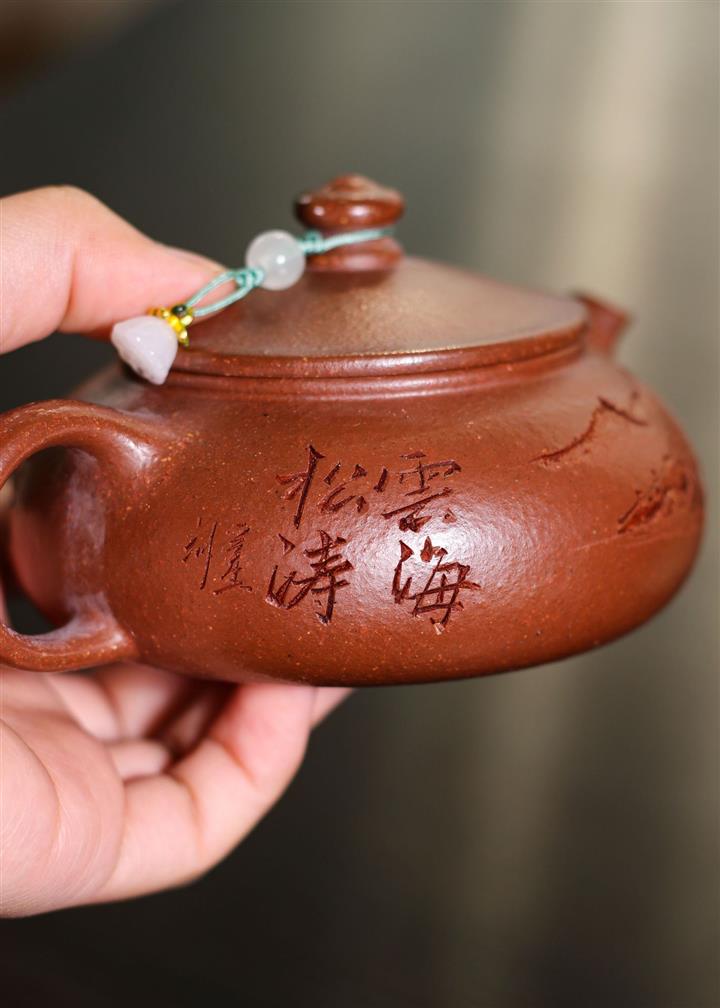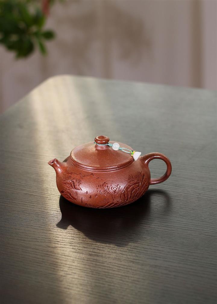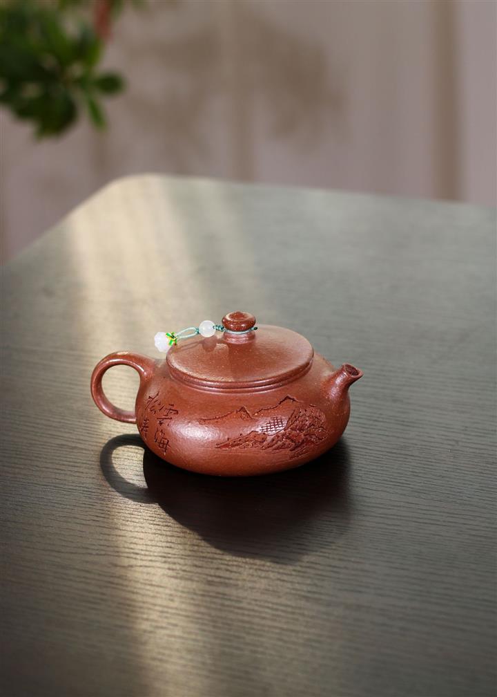 180cc原礦鐵血紅砂刻字寒江泡茶壺POT9481