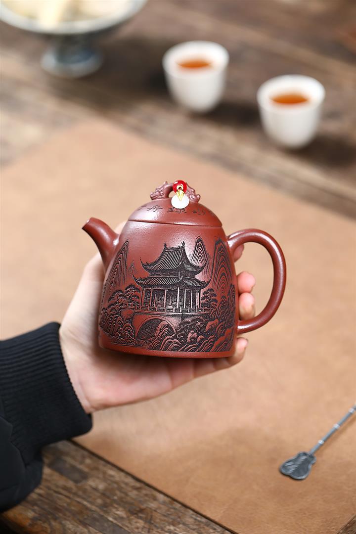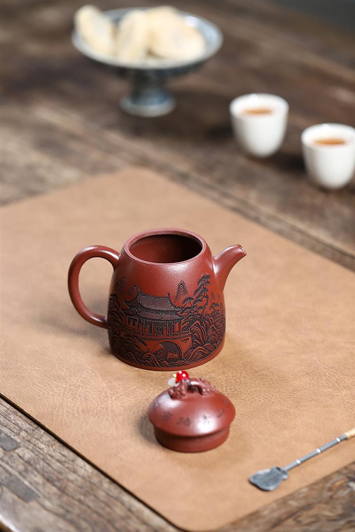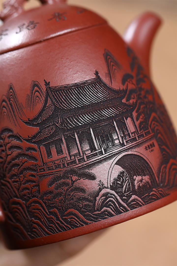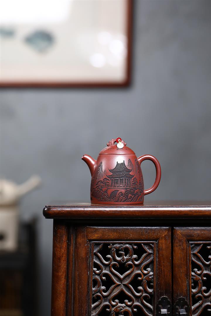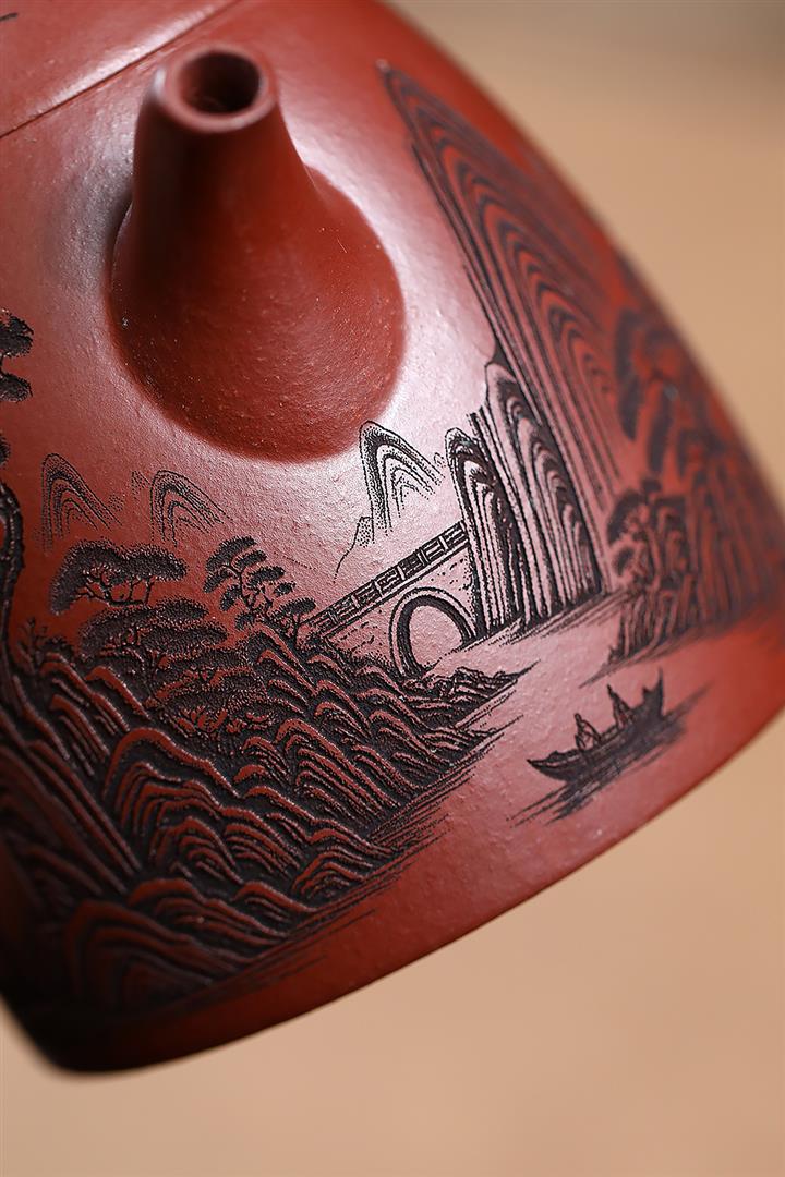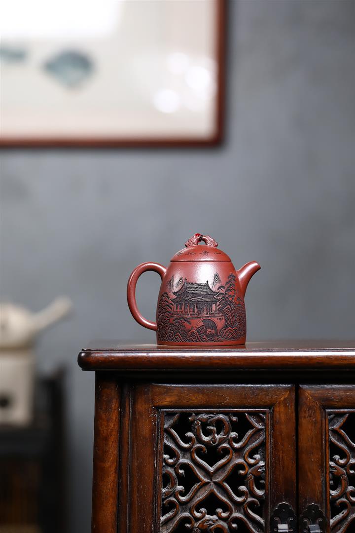 180cc原礦鐵血紅砂刻字寒江泡茶壺POT9481